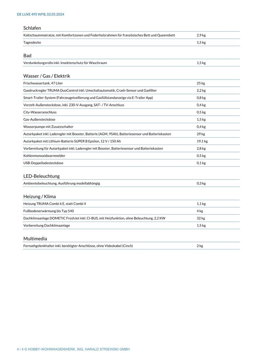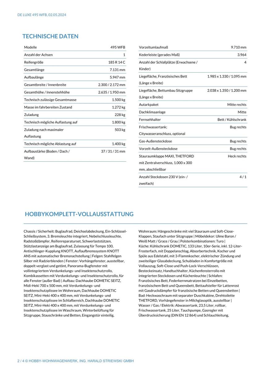 | Модель | Hobby de luxe 495 WFB (Modell 2024)Hobby de luxe 495 WFB (Modell 2024) |