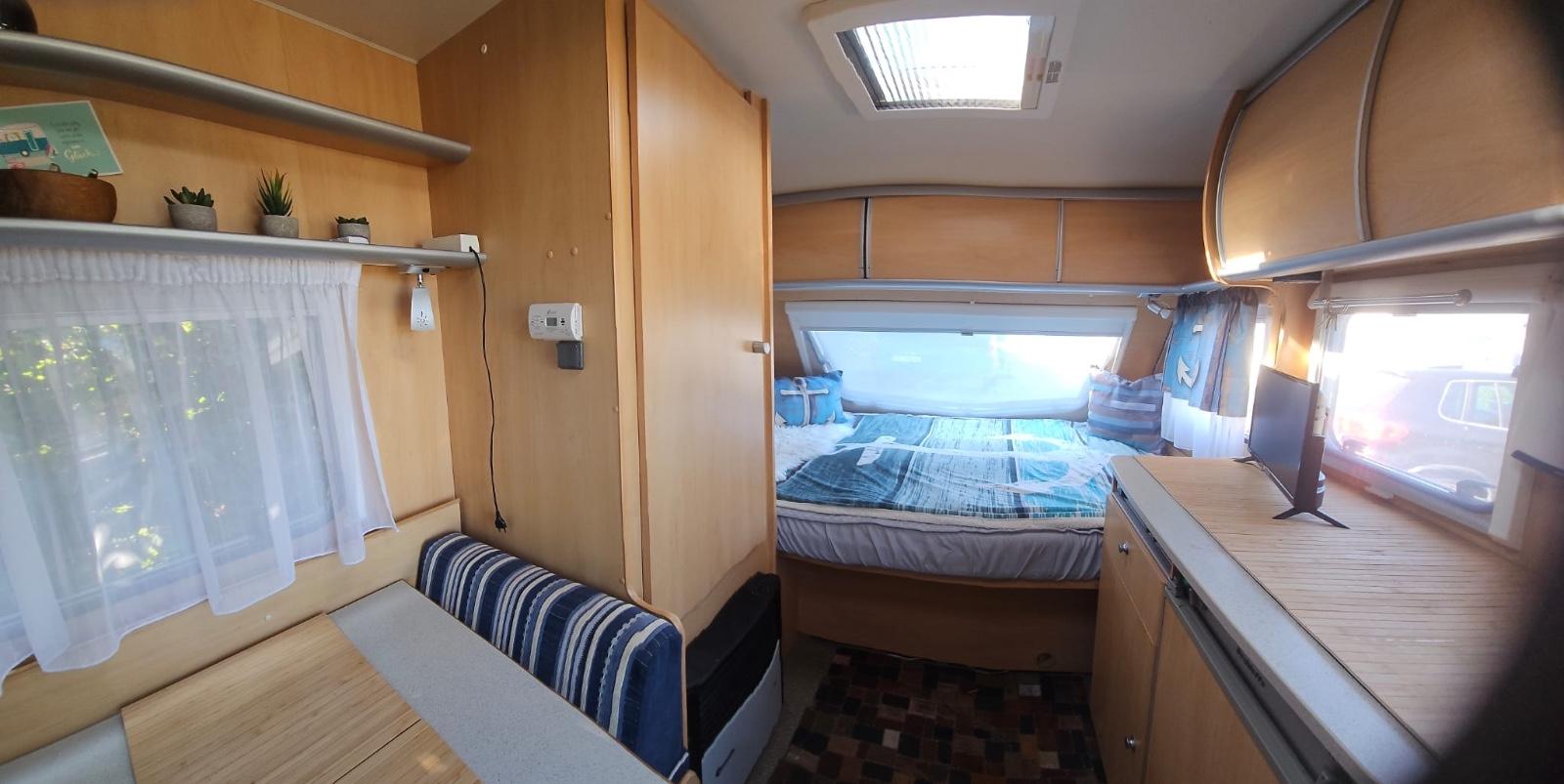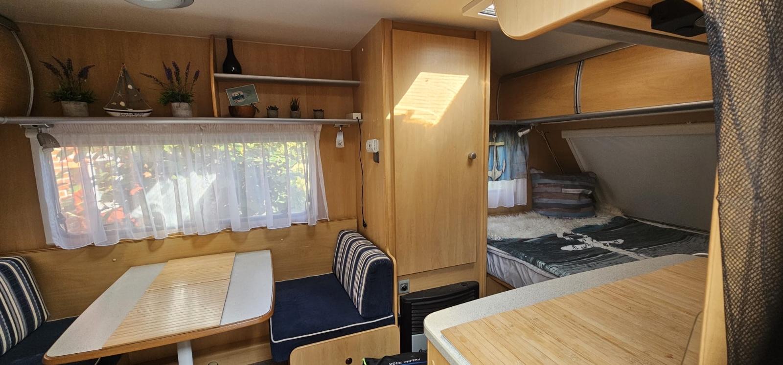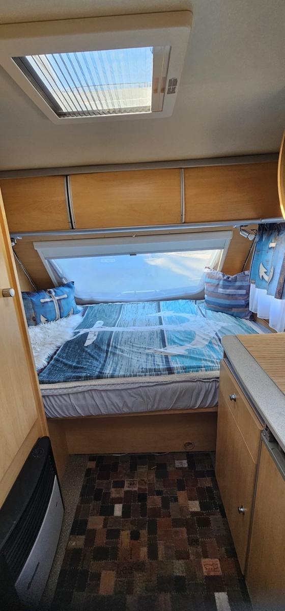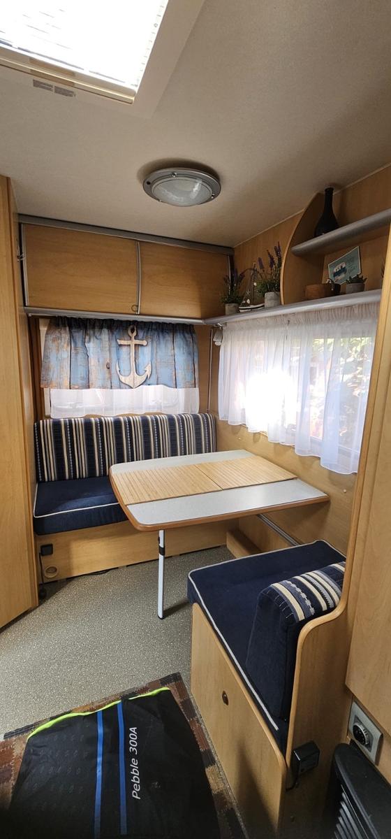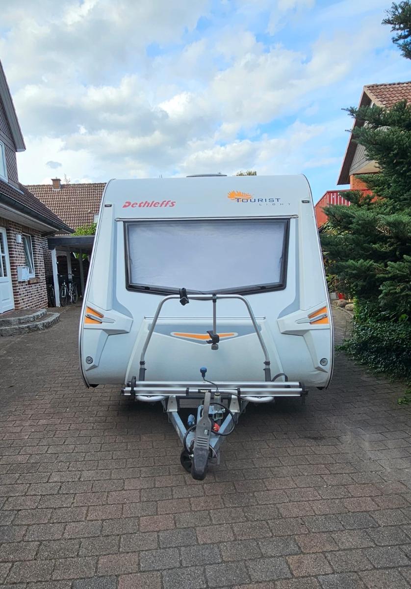 Dethleffs Tourist Light – kompakter Wohnwagen mit viel Zubehör, sofort reisefertig!Wir verkaufen unseren gepflegten Dethleffs Tourist Light (Baujahr 2007). Ein leichter, kompakter Wohnwagen, ideal für Paare oder kleine Familien. Er ist einfach zu rangieren, kann auch von kleineren Zugfahrzeugen problemlos gezogen werden und ist sofort startklar für die nächste Reise!Ausstattung innen:Festbett im Bugbereich mit großem Staufach darunter, eine Stauklappe hat einen kleinen Riss im Rahmen, siehe Foto. Die Funktion und Dichtigkeit ist gegeben.Sitzgruppe im Heck, umbaubar zum zusätzlichen BettKüche mit 3-Flammen-Gaskocher, Spüle, KühlschrankOmnibackofen (Gas)Bad mit Waschbecken, Spiegel- & Hängeschrank, Thetford-KassettentoiletteGasheizung, Dachluken mit Fliegengitter & VerdunklungViel Stauraum in Schränken und AblagenFernseher mit Halterung und Sat-Anlage mit Ständer (Easy find System), 3 Jahre alt. Damit lässt sich der Empfang ohne große Mühe herstellen. ein Außenanschluss für das Kabel ist auch vorhanden.Ausstattung außen:Thule Fahrradträger für 2 Räder, die Schienen für die Räder wurden etwas angepasst damit auch E-Bikes darauf passen.Thule Omnistor Markise 3 Jahre alt.Bullwing EM203 Mover mit Fernbedienung.Moverbatterie wurde letztes Jahr erneuert und ist mit einer Ladezustandsanzeige versehen, was sehr praktisch ist. Ein Ladegerät ist inklusive.Outwell Pebble 300A Vorzelt (mit Anleitung) AbdeckplaneZubehör inklusive:Komplettes Geschirr-SetOmnibackofen1 Campingtisch + 2 StühleVorzeltteppichOutdoor-/Campingschranku.v.m.Zustand: gepflegt/gebrauchtGepflegt, Nichtraucher, dicht! Kein muffiger Geruch oder Feuchtigkeit im Innenbereich.Nur kleiner Riss an einer Außenklappe (siehe Foto) .Vorne links befindet sich eine Delle im unteren Bereich (Detailfoto auf Anfrage).Die Lattenroste des Doppelbettes sind zusätzlich im Rahmenbereich verschraubt worden und sind mit Dämpfern versehen zum hochklappen. Die Scheibe im Heck habe ich erneuert Kein Unfall.Insgesamt ein toller, leichter Reisewohnwagen, der sofort startklar ist.Der Wohnwagen ist auf 1.350 Kg aufgelastet.Alle Angaben wurden so gewissenhaft wie möglich erstellt.Privatverkauf, daher keine Garantie oder Rücknahme.