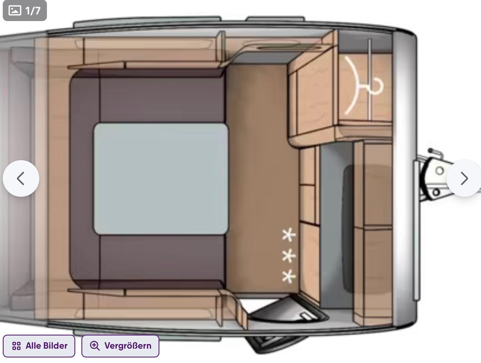 Ich verkaufe hier den klassischen Wohnwagen von Tabbert (Spitznamen ... das Ei, die Träne, B... Kugel, etc.).Er ist leicht, einfach zu ziehen und hat eine geniale Raumaufteilung.Es gibt eine große Sitzgruppe, welche sich ganz schnell zu einem Bett umbauen läßt. Bis zu ca. 4 Personen (2 Erwachsene und zwei Kinder) sind möglich.Außerdem sind viele, zum Teil auch große Staufächer vorhanden.Die Küchenzeile beinhaltet einen Kühlschrank, einen Herd, Schränke und Schubladen ... daneben ist ein Kleiderschrank , indem auch eine Standheizung integriert ist.Weitere Extras sind ein Mover (ferngesteuerte Einparkhilfe), ein Toilettenkasten mit transportierbarer Toilette und ein großes Vorzelt (mit Gestänge), welches exakt an den Wohnwagen integriert (eingefädelt) werden kann.Ich verkaufe den Wohnwagen, weil ich mir ein Wohnmobil zugelegt habe.Bilder von innen folgen noch ...ACHTUNGDies ist ein Privatverkauf, bitte beachten Sie folgende Erklärung: Die neueste EU-Gesetzgebung sieht vor, dass auch Privatverkäufer Gewährleistung/Garantie übernehmen, wenn sie dies nicht ausdrücklich ausschließen. Ich schließe hiermit jegliche Garantie, Gewährleistung und Rücknahme bei Nichtgefallen aus ! Das bedeutet : Mit der Einwilligung des Kaufes erklären Sie sich ausdrücklich damit einverstanden, auf die Ihnen gesetzlich zustehende Sachmängelhaftung (auch Garantie oder Gewährleistung genannt) völlig zu verzichten.Ich übernehme keine Verantwortung für unbeabsichtigte oder zufällige Fehler, Auslassungen oder Ungenauigkeiten in Bezug auf die Fahrzeugspezifikationen, diese können keine festen Verpflichtungen für den Verkäufer nach sich ziehen, der Benutzer trägt die volle Verantwortung für die Verwendung der Informationen und ist verpflichtet, deren Richtigkeit durch Befragung des Verkäufers sicherzustellen.