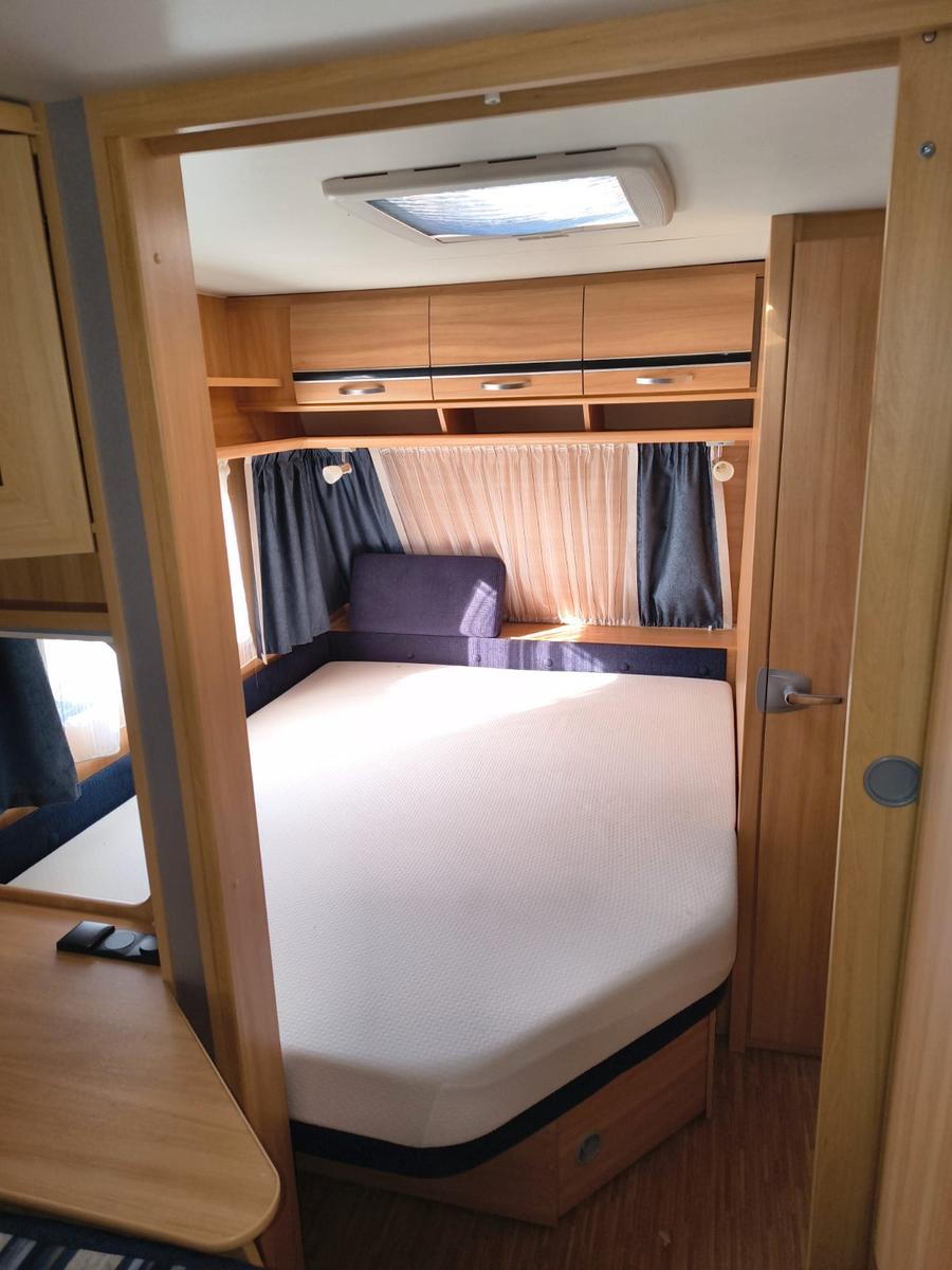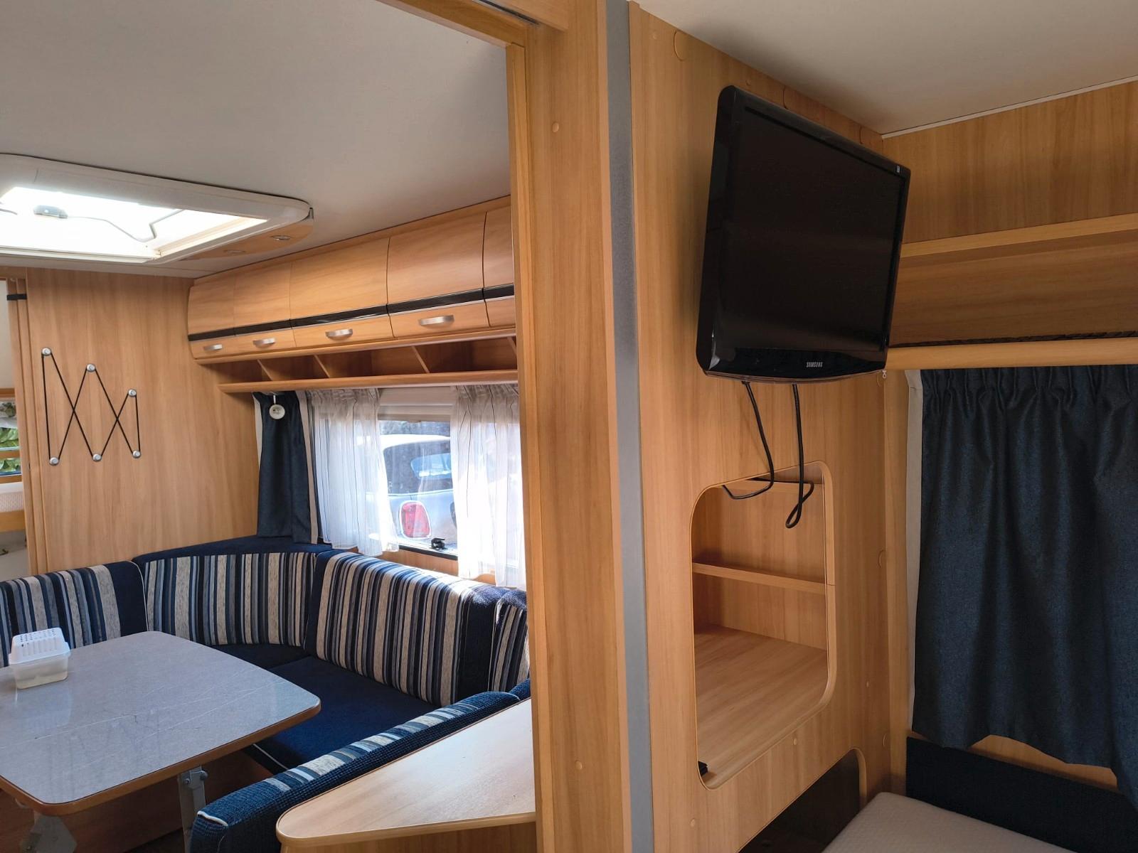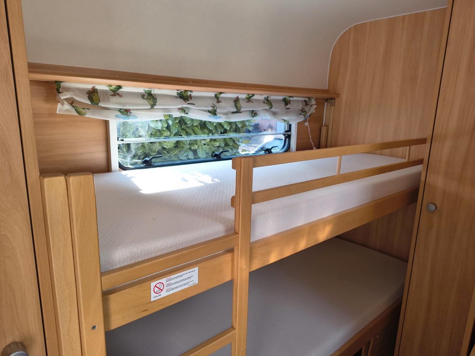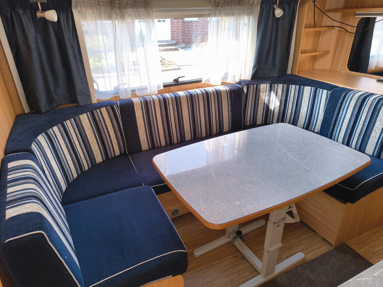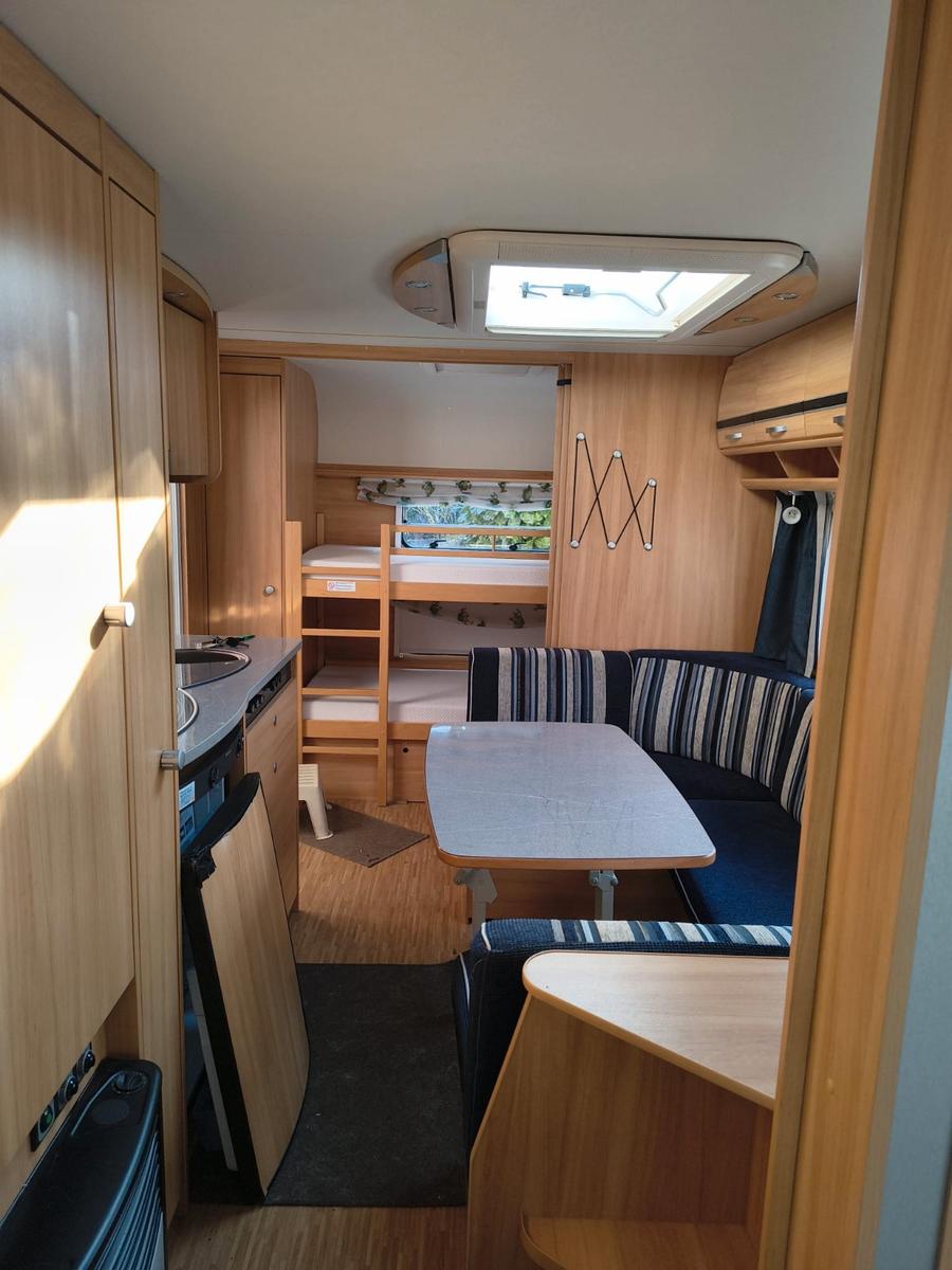 Wir verkaufen unseren treuen Wohnwagen.Da die Kinder nicht mehr mitfahren, ist der Wohnwagen zu groß für uns. Er hat uns 6 Jahre lang treu begleitet. Auch bei kalten Temperaturen, ist er gut isoliert und behält die Wärme im Wohnwagen.Die Außendusche ist perfekt, um schnell und einfach den ersten Sand vom Strand abzuwaschen. Der Wohnwagen hat sehr viel Stauraum, die Kinder haben in ihrem Schlafbereich 2 eigene Schränke, in denen sogar unser Schlauchboot Platz gefunden hat. Die geräumige und bequeme Sitzgruppe bietet genug Platz, so dass auch 4 Personen ohne Umbau am Tisch essen können. Spieleabende bei kühlem Wetter oder abends sind ebenfalls kein Problem.Zudem gibt es noch die passenden Teppiche, die passgenau in die Gänge passen. Wir haben sie nicht genutzt und sind somit in einem guten Zustand.Wir geben den Wohnwagen mit Kabeln, Adaptern und einer Gasflasche ab. Dazu ein Vorzelt von Obelink. Statt Stangen, wird das Vorzelt aufgepumpt, die Seitenteile per Reißverschluss eingespannt.Die Kühlschranktür ist leider nicht mehr in den Angeln, man kann ihn dennoch nutzen, es hat keinerlei Einfluss auf die Leistung des Kühlschranks. Der Warmwasserboiler ist defekt und muss bei Bedarf getauscht werden.Bei Nichtgebrauch wurde der Wohnwagen abgedeckt.Privatverkauf, keine Garantie, Gewährleistung und Rücknahme. Gekauft wie gesehen.