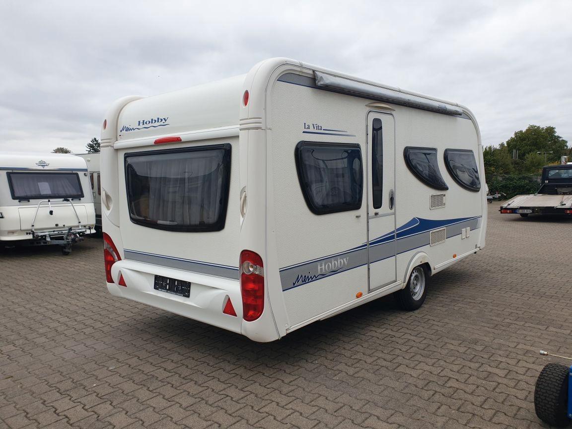 Finanzierung auch ohne Anzahlung möglich.Hobby La Vita 455 mit Doppelbett und Rundsitzgruppe. HU & Gasprüfung bis 09-2027.Zgg.1400kg. Leergewicht: ca.1052kg. Zuladung: ca.348kg. Länge:6550mm.Breite:2300mm.Höhe:2540mm. EZ:09-2009 2-HandAusstattung:BPW Chassis.Antischlingerkupplung Winterhoff WS3000Reifen 185R14C DOT.0317Fliegenschutz2 Dachhauben7 x Aufstel-Fenster mit Kombi-RollosSeitenstaufach mit Service - KlappeBugkasten für 2x 11kg GasflaschenTruma S3002 Gas-Heizung mit UmluftFrischwasser Tank ca.30L.Truma Therme 5L.Sackmarkise kostenlose beigabeSchlafbereich:Rundsitzgruppe im Heck umbaubar zum Bett ca.1,40x2,00m.Doppelbett im Bug ca. 1,40x1,90m.Trenntür zum SchlafbereichKüchenzeile:3 Flammen GaskocherSpülbeckenDometic ca 90L Kühlschrank mit Frostfach 12V/230V/Gasbetrieb.Nasszelle:Thetford Chemie-Casseten-WCDuschwanne. Spiegelschrank.Waschbecken.Leichte Hagelschaden auf dem Dach(Kleinen Dellen). Freundliche Einrichtung. Nichtraucher Fahrzeug, keine unangenehmen Gerüche. Bei der Abholung des Caravans werden alle Geräte mit dem Käufer getestet. Besuchen Sie unseren Shop www.caravan-center.biz, Schreibfehler, Irrtümer und Zwischenverkauf vorbehalten. Überführungskennzeichen!!! Wir helfen Ihnen gerne weiter.Weitere Bilder auf unsere Web-Seite.Beratung und Verkauf:Sommerzeit: März-Oktober.Montag bis Freitag : 10 Uhr - 17 Uhr.Samstag : 10 Uhr - 16 Uhr.Winterzeit: November-FebruarMontag bis Samstag: 10 Uhr - 16 Uhr.Und nach dem Termin Vereinbarung