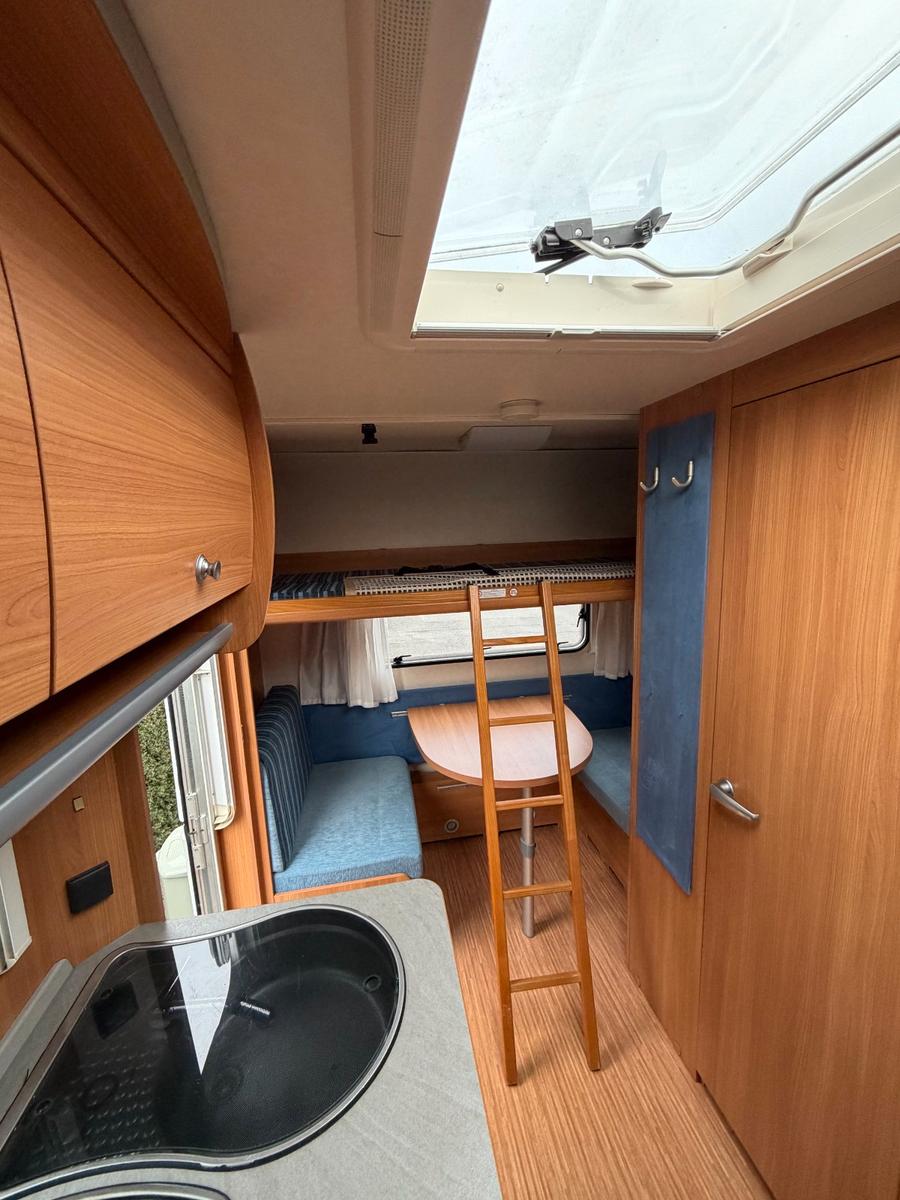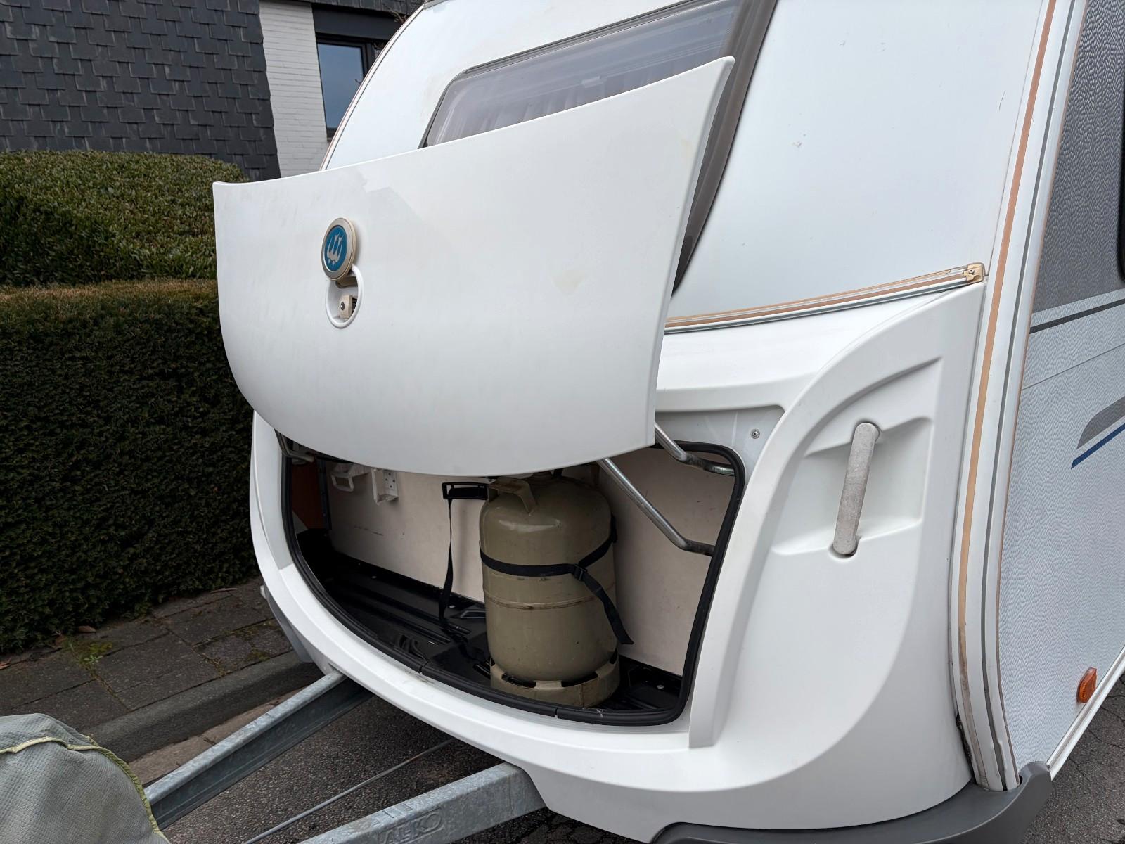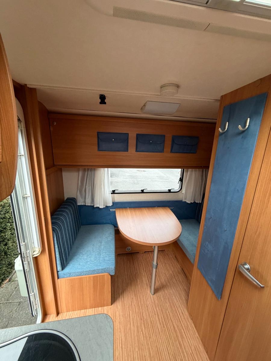 Wir verkaufen schweren Herzens unseren Knausi, der uns nun 10 Jahre auf zahlreichen schönen Urlauben begleitet hat. Nun sind die beiden Kinder zu groß, so dass wir leider auf einen anderen Wagen wechseln müssen.Der Wagen ist sehr gepflegt, wie auf den Bildern zu sehen. Sowohl innen als auch außen. Einzelne Gebrauchsspuren sind nach 16 Jahren jedoch unvermeidbar.Er ist absolut dicht. Die letzte Dichtheitsprüfung ist zwar schon ca. 5 Jahre her. Der Wagen stand aber stets gut behütet entweder unter Dach oder mit Abdeckhaube, falls dies nicht möglich war.Der Wohnwagen hat vier Schlafplätze. Er hat eine große Sitzgruppe vorne, die sich sehr einfach zu einem 2 x 1,40 m Doppelbett umbauen lässt. Hinten befindet sich eine kleine Sitzgruppe, die sich ebenso zu einem vollwertigen Bett umbauen lässt. Zusätzlich gibt es ein Kinderklappbett. Dies ist für ein Maximalgewicht bis 60 kg gedacht. Es ist optimal für Kinder bis ungefähr 13 Jahr geeignet. Mit dabei ist das Markenzelt von Brand wie in den Bildern zu sehen.Der Wagen ist mit zahlreichen Raffinessen und Sonderzubehör ausgestattet, wie z.B.Auflastung auf 1.300 kg*** (1.350 kg-Fahrwerk)Alle Fenster mit Fensterrollos und FliegengitternInsektenschutztürRiesiges Panorama-Dachfenster FrontscheibeRadkappenEnergie-Spar-BeleuchtungAnti-Schlinger-KupplungSonderpolster Blue EditionErsatzradhalterungGas-AußensteckdoseRauchmelderDeichselabdeckungFernsehvorbereitunguvm.TüV hat der Wagen bis 2027. Alle letzten TüV-Prüfberichte liegen vor und sind einsehbar. Der Wagen war stets ohne Beanstandung.Besichtigung ist jederzeit möglich. Bei Fragen bitte einfach melden.