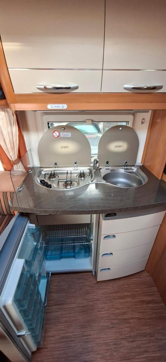 Sehr Gepflegter Hobby 460 UFE aus 1.Hand mit Mover , Sackmarkise und 2er Fahrradträger.Ges.-Gew.: 1400 kg., TÜV, Gasdruck bis 07/2027, 100er Zulassung, Spurstabilisator.- Mover- Thule Omnistor Sackmarkise, SAT-Anlagen-Vorrüstung- Truma Heizung mit Truma-Vent, Fußbodenheizung,Gasherd mit Abzugshaube, Spüle-, Großer Kühlschrank mit separatem Eisfach, Zusätzliche Waschbecken im Schlafbereich, Waschraum m. eingeb. Toilette, Ambientebeleuchtung, Verdunklungsrollos mit Moskitonetz, Schlafplätze für 4 Personen