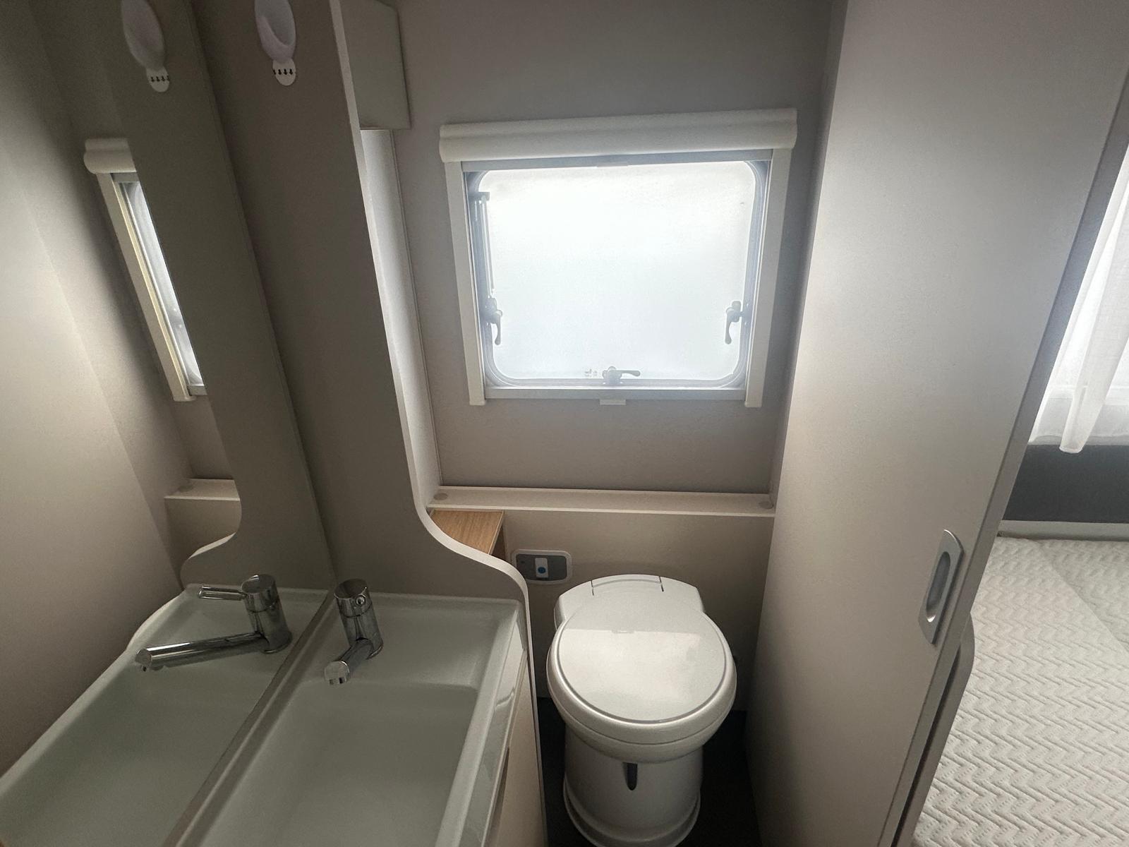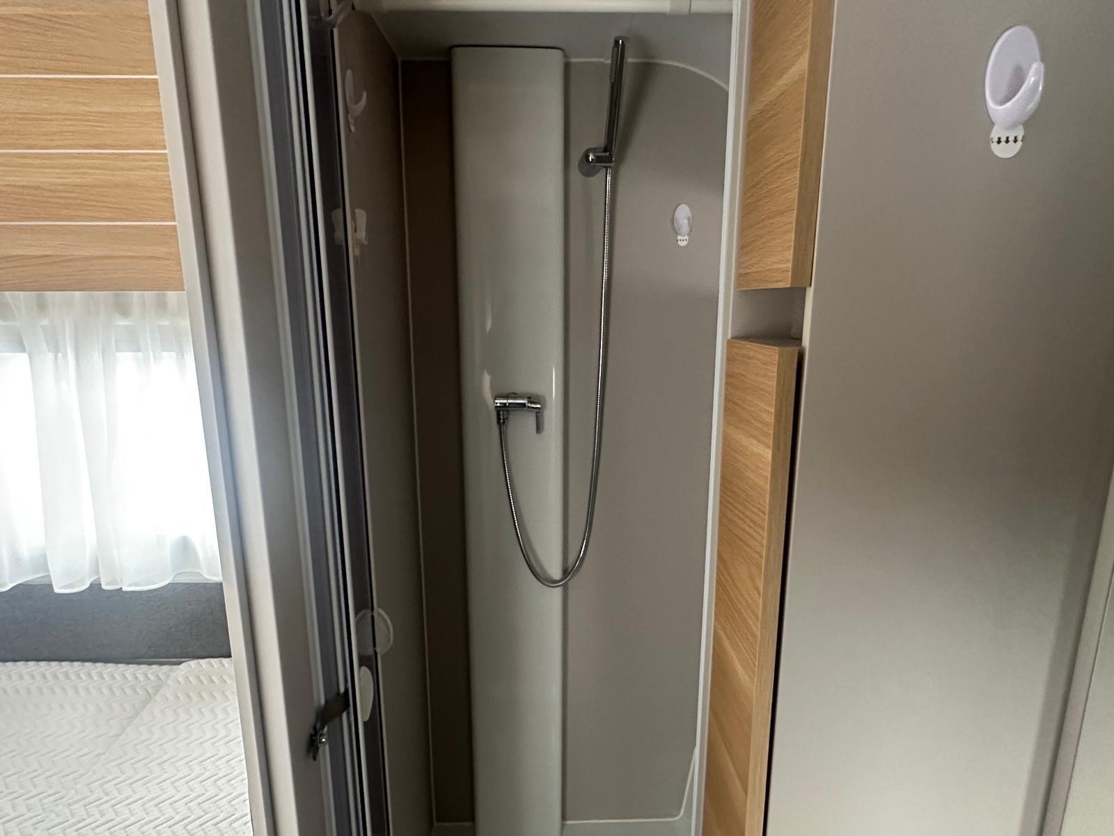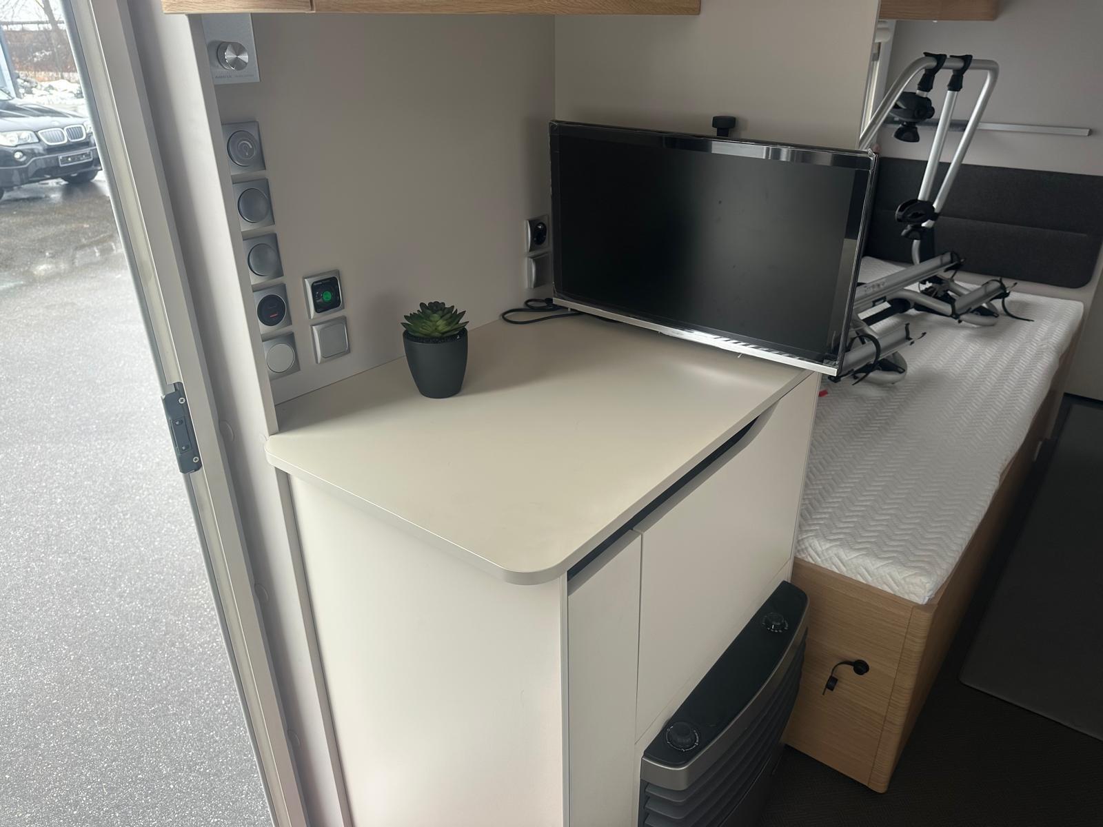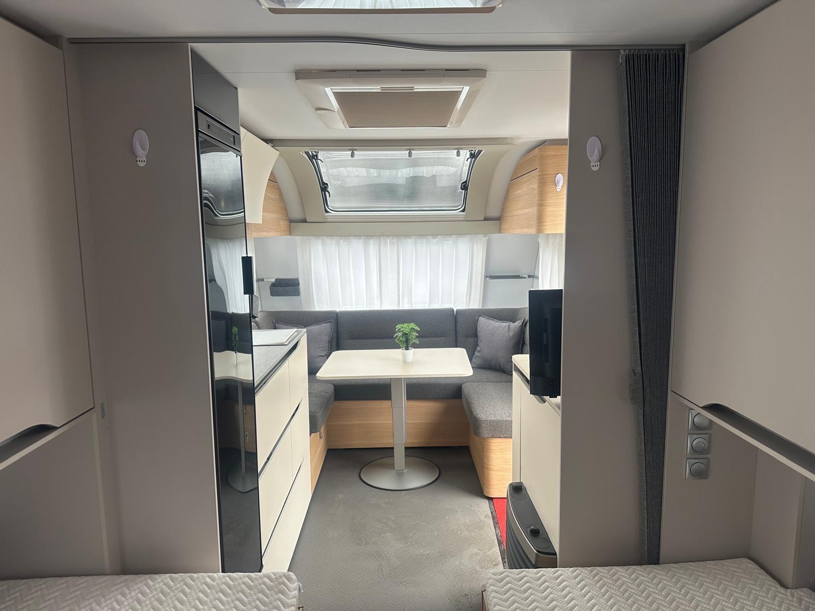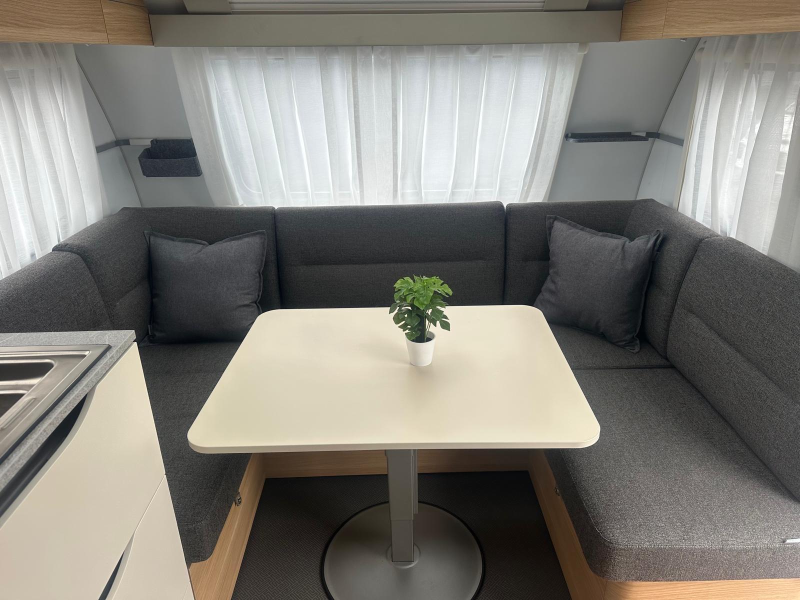 Ausstattung & Komfort-Grundriss: Einzelbetten im Heck + großeRundsitzgruppe-Bettenanzahl: 4 Schlafplätze-Separate Dusche & Kassetten-Toilette-Gas-Warmluft-Heizung Truma S 3004-Bluetooth-Soundsystem-TFT-Halterung-Truma Warmwasserboiler-Großer 165 L Kühlschrank mit Gefrierfach-3-Flammiger Gasherd, Spüle, Dunstabzug, Abtropfschale-Panorama-Dachhaube & Dachfenster (Midi Heki)-Eingangstür mit Fenster & Fliegenschutz-Verdunkelung + Insektenschutz an allen Fenstern-Anhänger-Stabilisierungs-System von ALKO