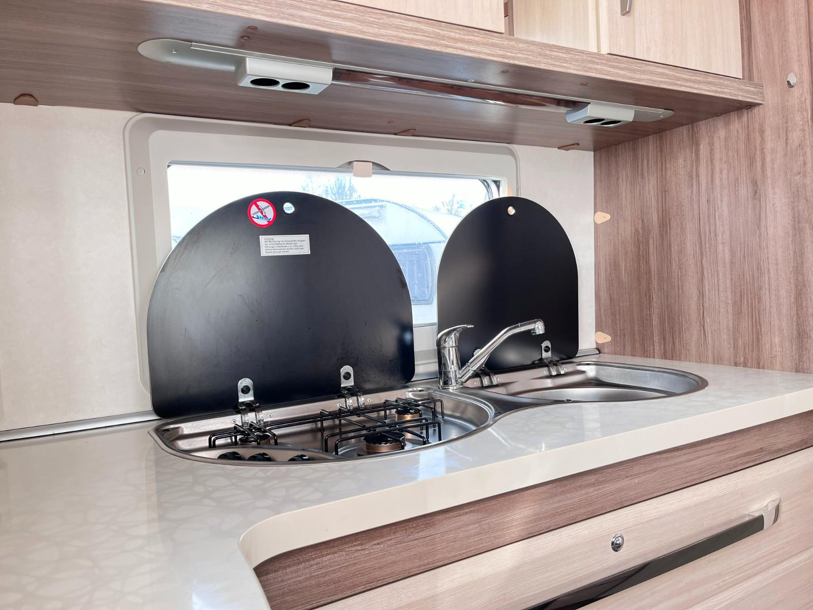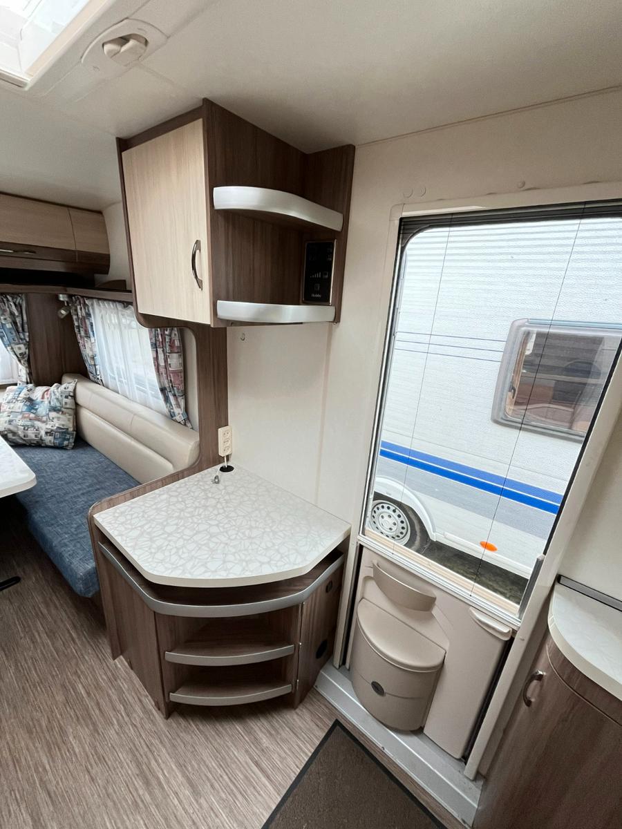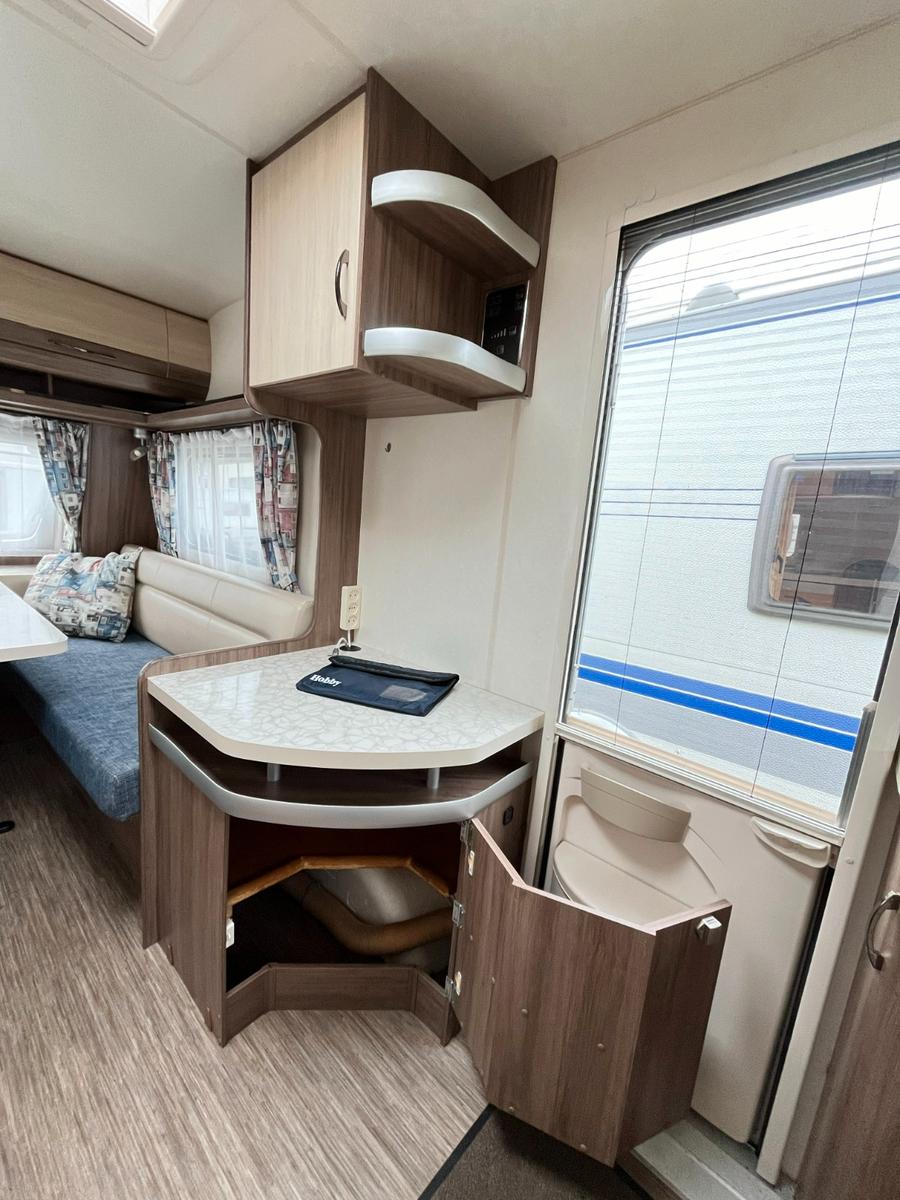 Super schöner und top-gepflegter Wohnwagen der Marke Hobby, Typ: De Luxe Easy 400 DB für 2 Personen.Erstzulassung: 14-10-2014.Sitzgruppe.Sitzgruppe lässt sich zu einem großen Bett (170 cm x 200 cm) umbauen.TV-Möbel mit Stauraum und TV-Anschluss.Heckküche mit 3 Flammenkocher und Spulbecken mit Glasabdeckung und großen, geräumigen, tiefen Schubladen.Großer Kühlschrank mit großem Gefrierfach.Heizung und Hängeschrank.Naßzelle mit Thetford Chemie-Toilette, Eckwaschbecken, Spiegel, Beleuchtung, Stauraum und Duschwanne.Ausstellfenster rundum.Kombi-Kassettenrollos.Panorama-Dachluke.Warmwasserversorgung.Frischwassertank.Einfüllöffnung Frischwassertank.Außenanschluss für TV und Strom.Mover.Fahrradträger.Antischlingerkupplung.Masse leeres Fahrzeug 968 Kg.Zul.Gesamtgewicht 1350 Kg.Tüv und Gasabnahme auf Wunsch möglich (siehe Homepage-Impressum).www.mobile.de/der-hollanderUnsere Anzeigen wurden mit größtmöglicher Sorgfalt erstellt, es können daraus jedoch keine Rechte abgeleitet werden.Wir haben geöffnet von Montag bis Freitag von 10:00 bis 17:00 Uhr.Das Hollander-Team.