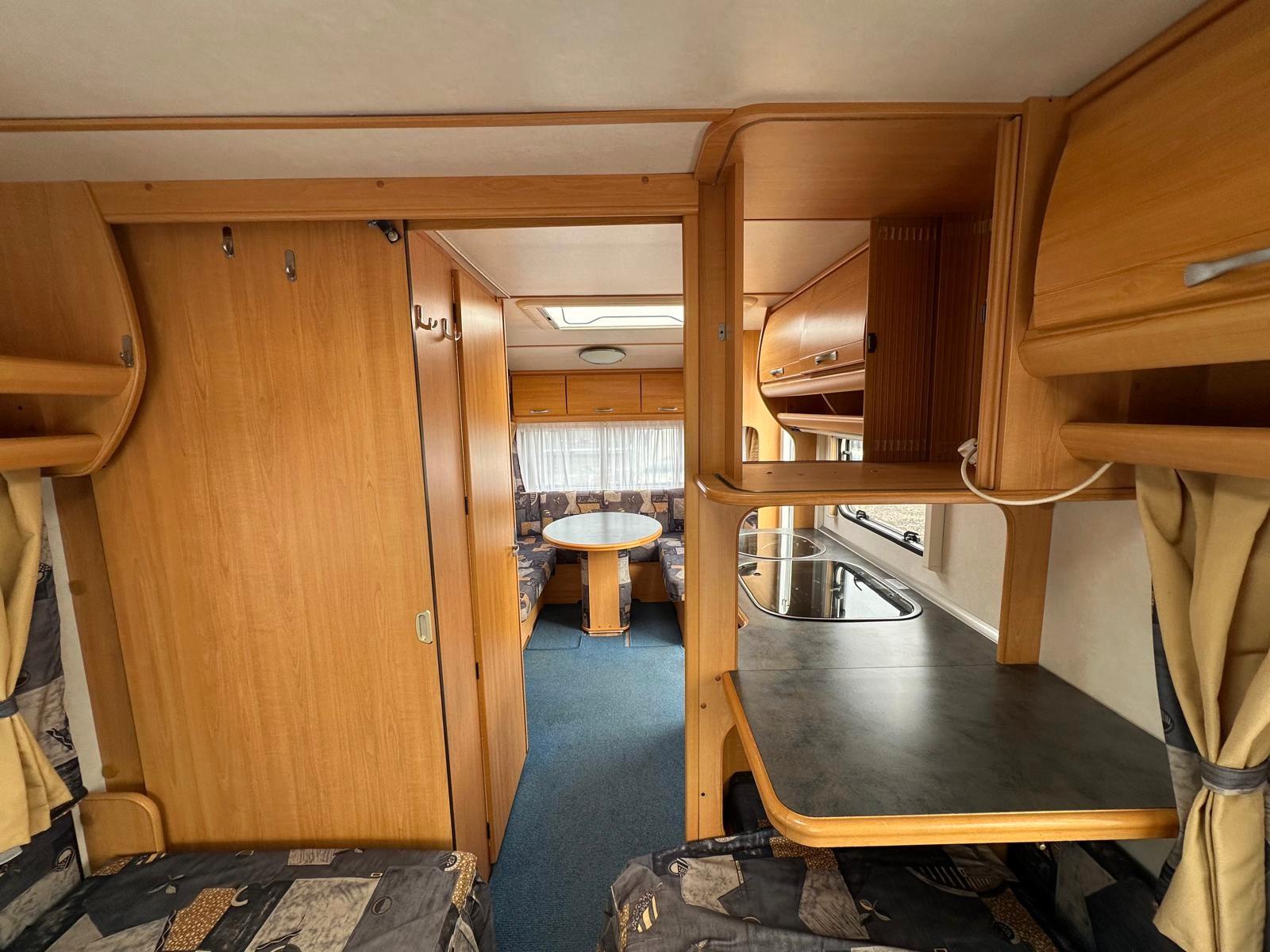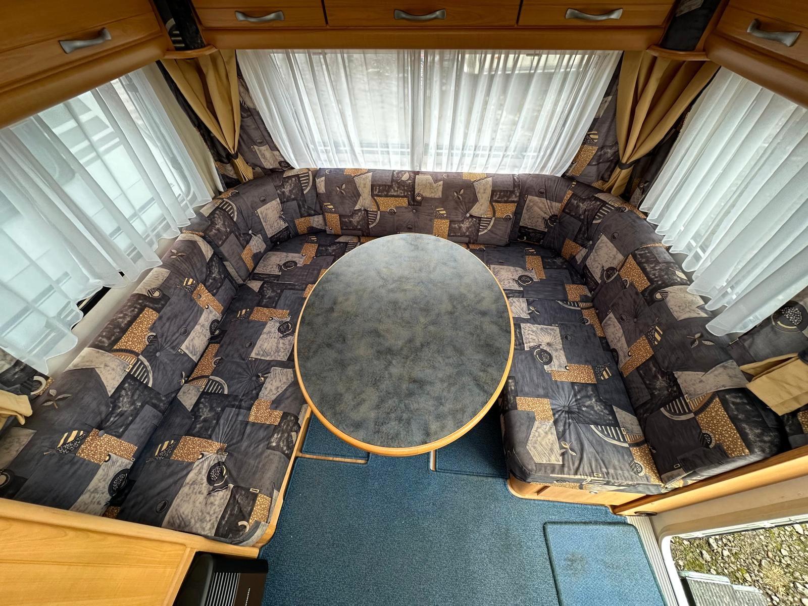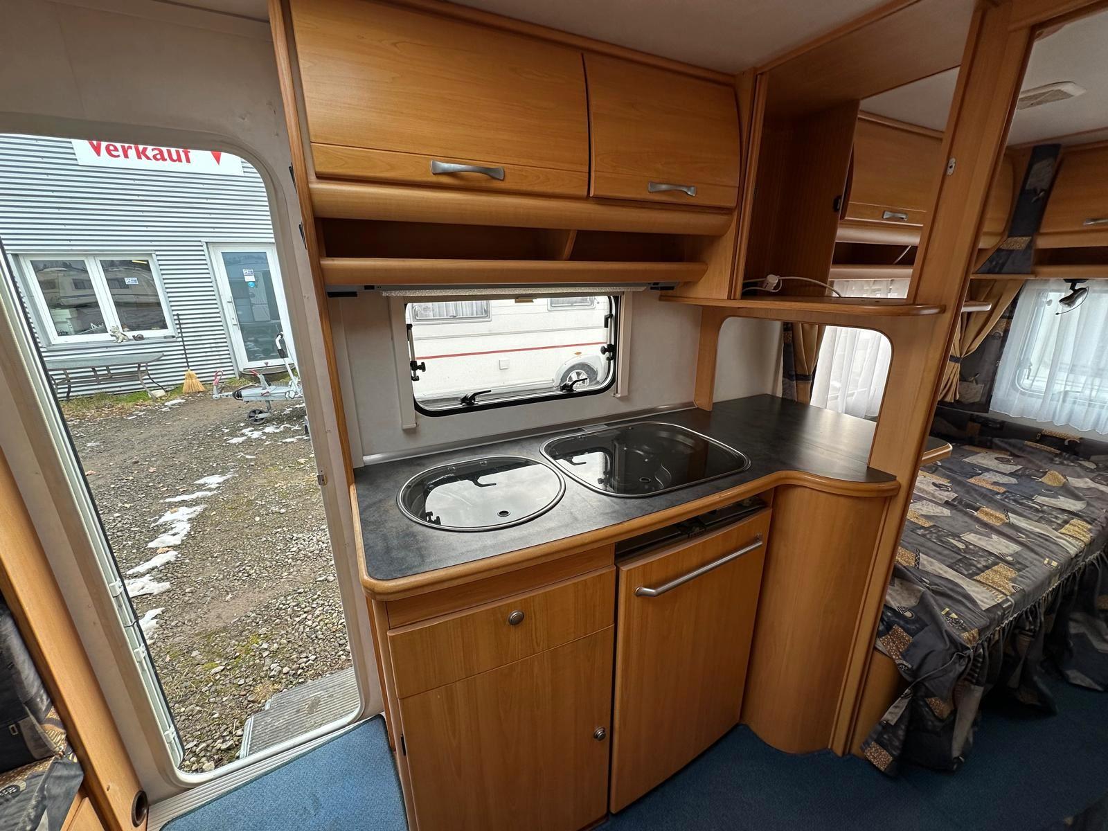 TÜV NEU /100 KM/H ZULASSUNG MIT NEUEN REIFEN FÜR 190,- EURO /1 JAHR GEWÄHRLEISTUNG /GASPRÜFUNG NEU, INKL NEUEM SCHLAUCH UND REGLER#Kochen• Gasherd 3-flammig• Kühlschrank Dometic (78 Liter) mit Eisfach (10,5 Liter) 12V/230V/Gasbetrieb• Warmwasser über 230V Therme#Heizen• Gas-Heizung Trumavent S3002 mit Umluft#Schlafen• Einzelbetten (Liegefläche je ca. 84 x 184 / 204 cm)• Rundsitzgruppe (Liegefläche ca. 162 x 205 cm)• Schlafbereich ist über Schiebetür trennbar#Ausstattung• Alle Fenster verfügen über Gardinen (ausgenommen Küchenfenster), Verdunklungsrollos und Insektenschutzgitter• Tür mit Ablagen• 3 Dachhauben• 7 Aufstell-Fenster#Sanitär• Chemie Kassetten-WC Thetford• Warmwasser über 230V Therme• Duschtasse mit Duschkopf• Spiegel, Waschbecken, Schrank• Fest verbauter Frischwassertank#Aussen/Zubehör• Wassereinfüllstutzen aussen• Gaskasten für 2x 11 kg• Antischlingerkupplung• Seitenstaufach mit Serviceklappe• Vorzelt-Umlaufmaß: 956 cm (zu ihrer Information)• Leergewicht ca. 1075 kg///Finanzierung über Hausbank bis zu 120 Monate ohne Anzahlung möglich//ANLIEFERUNG AUF WUNSCH GEGEN AUFPREIS/INZAHLUNGNAHME AUF WUNSCH MÖGLICH/Bitte reservieren Sie Ihr Wunschfahrzeug einen Tag vor Besichtigung, da diese Aufgrund der hohen Nachfrage oft sehr schnell verkauft sind. !!!!!!
