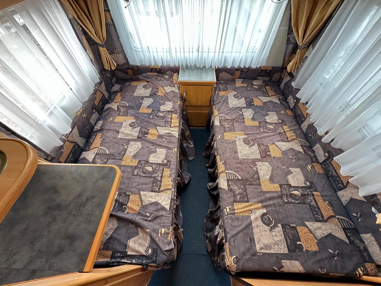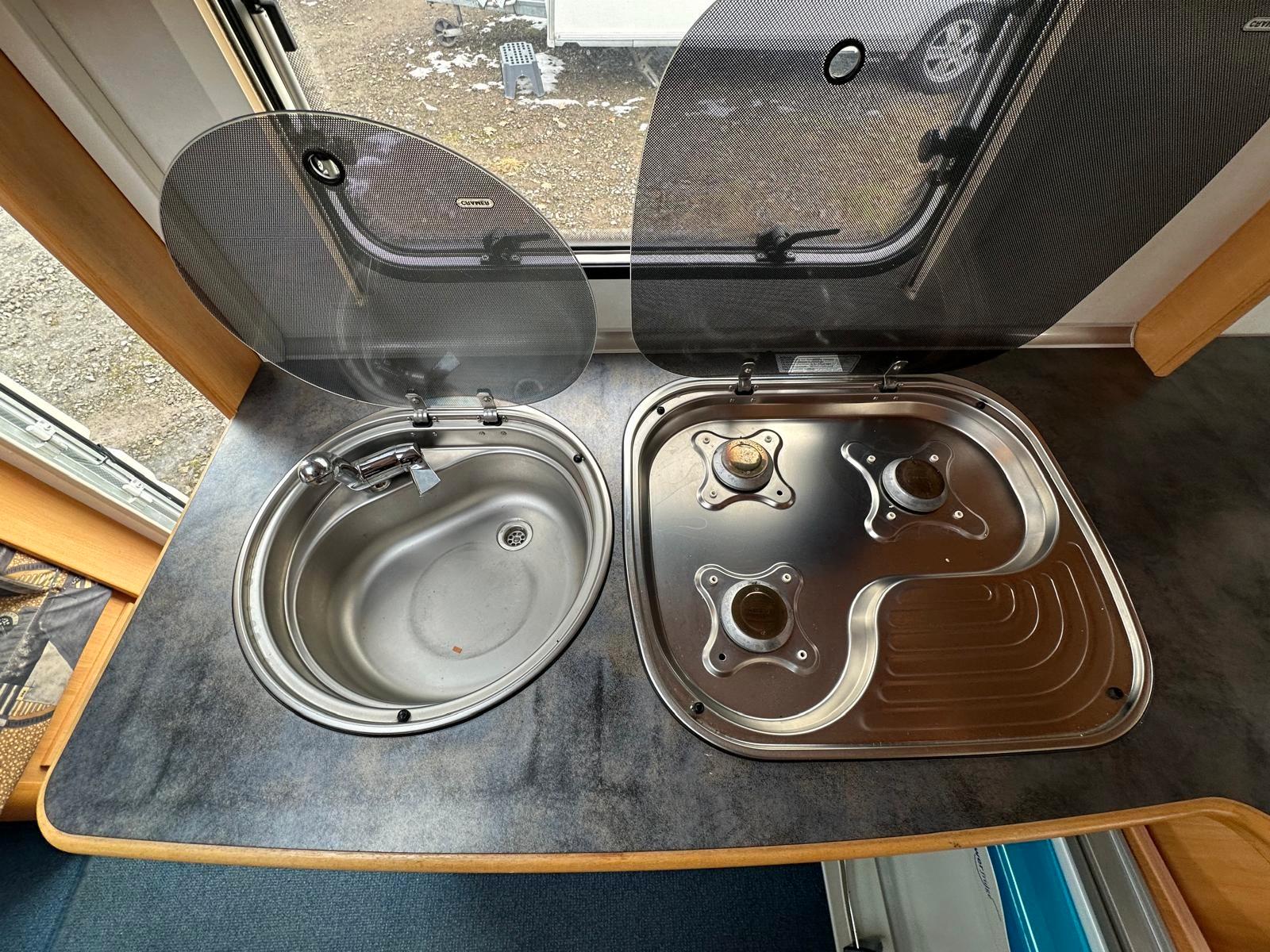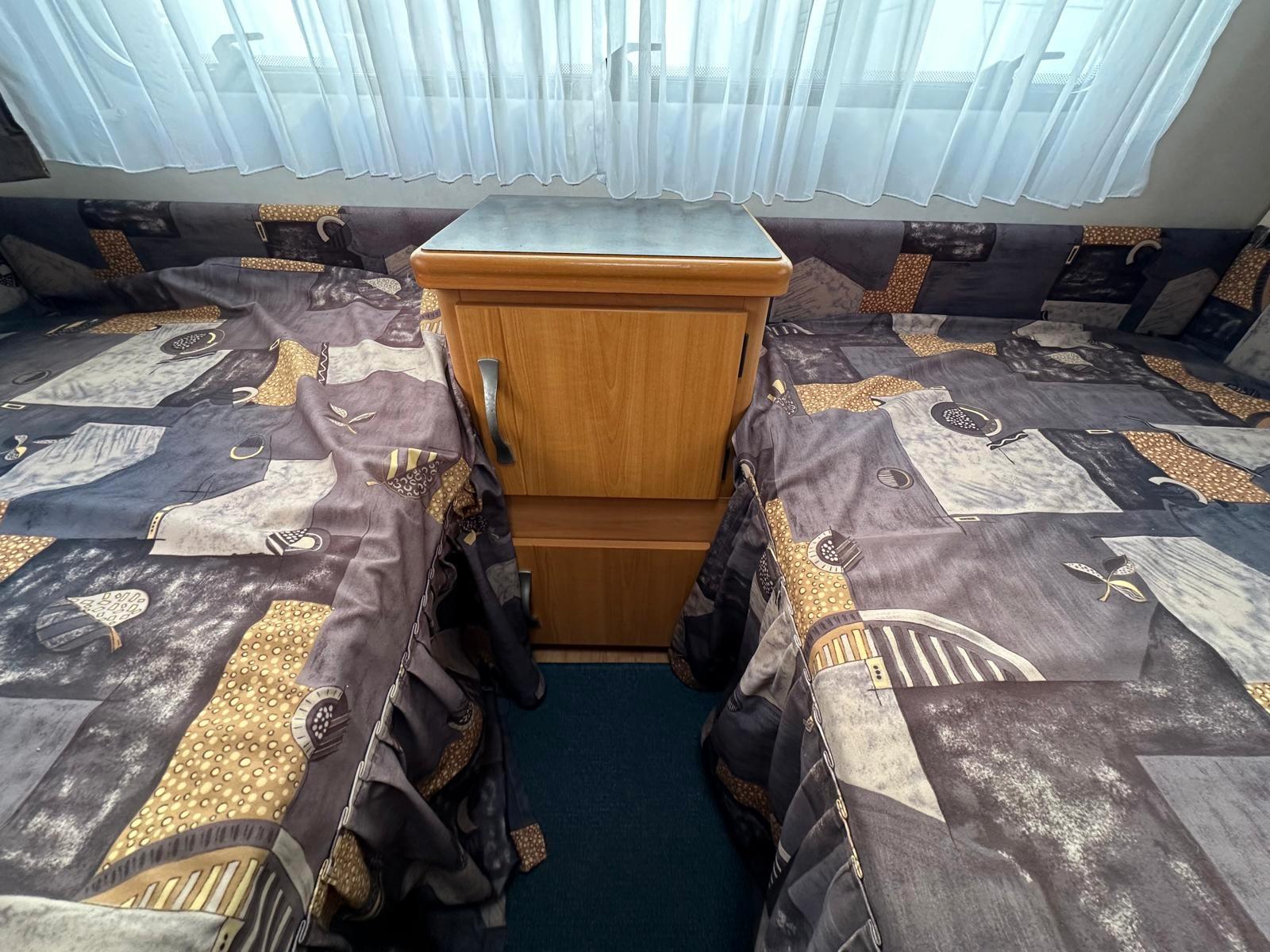 TÜV NEU /100 KM/H ZULASSUNG MIT NEUEN REIFEN FÜR 190,- EURO /1 JAHR GEWÄHRLEISTUNG /GASPRÜFUNG NEU, INKL NEUEM SCHLAUCH UND REGLER#Kochen• Gasherd 3-flammig• Kühlschrank Dometic (78 Liter) mit Eisfach (10,5 Liter) 12V/230V/Gasbetrieb• Warmwasser über 230V Therme#Heizen• Gas-Heizung Trumavent S3002 mit Umluft#Schlafen• Einzelbetten (Liegefläche je ca. 84 x 184 / 204 cm)• Rundsitzgruppe (Liegefläche ca. 162 x 205 cm)• Schlafbereich ist über Schiebetür trennbar#Ausstattung• Alle Fenster verfügen über Gardinen (ausgenommen Küchenfenster), Verdunklungsrollos und Insektenschutzgitter• Tür mit Ablagen• 3 Dachhauben• 7 Aufstell-Fenster#Sanitär• Chemie Kassetten-WC Thetford• Warmwasser über 230V Therme• Duschtasse mit Duschkopf• Spiegel, Waschbecken, Schrank• Fest verbauter Frischwassertank#Aussen/Zubehör• Wassereinfüllstutzen aussen• Gaskasten für 2x 11 kg• Antischlingerkupplung• Seitenstaufach mit Serviceklappe• Vorzelt-Umlaufmaß: 956 cm (zu ihrer Information)• Leergewicht ca. 1075 kg///Finanzierung über Hausbank bis zu 120 Monate ohne Anzahlung möglich//ANLIEFERUNG AUF WUNSCH GEGEN AUFPREIS/INZAHLUNGNAHME AUF WUNSCH MÖGLICH/Bitte reservieren Sie Ihr Wunschfahrzeug einen Tag vor Besichtigung, da diese Aufgrund der hohen Nachfrage oft sehr schnell verkauft sind. !!!!!!
