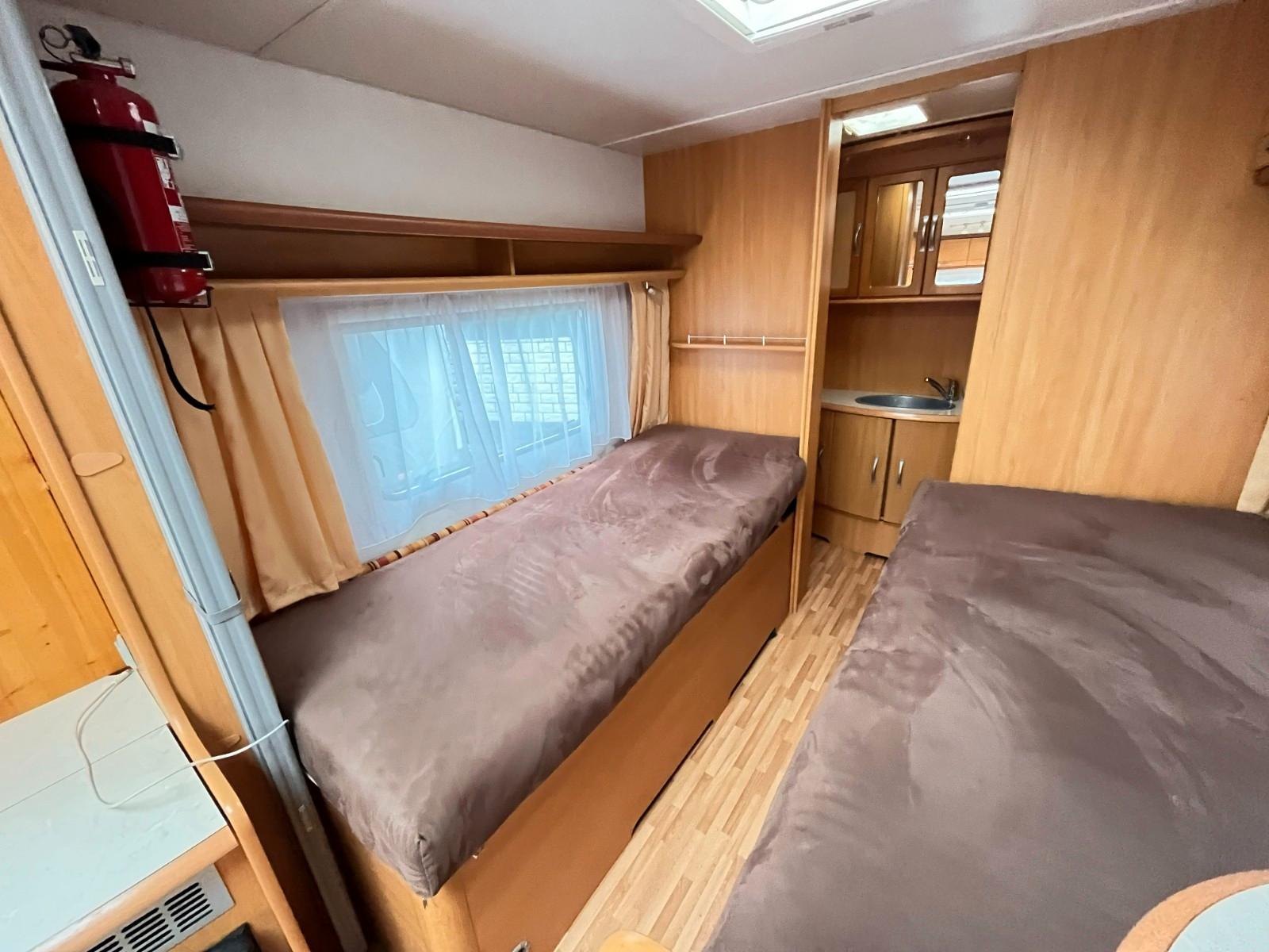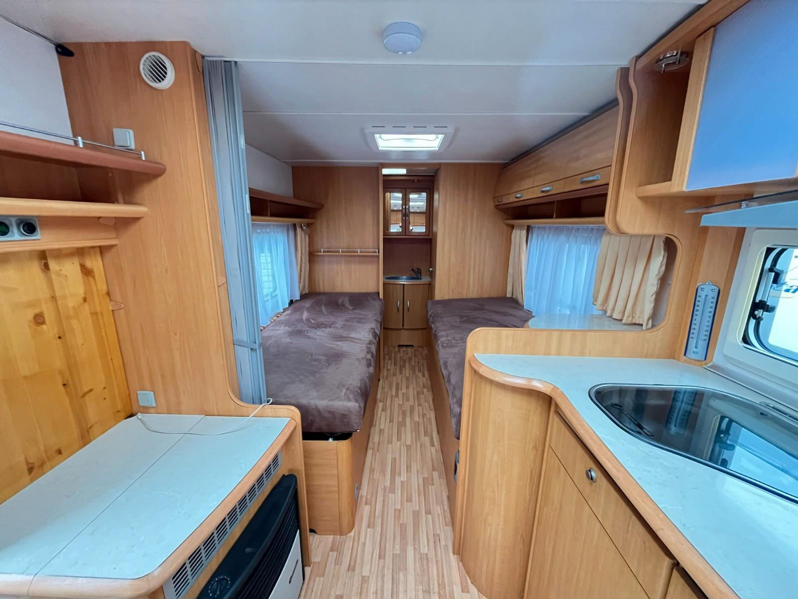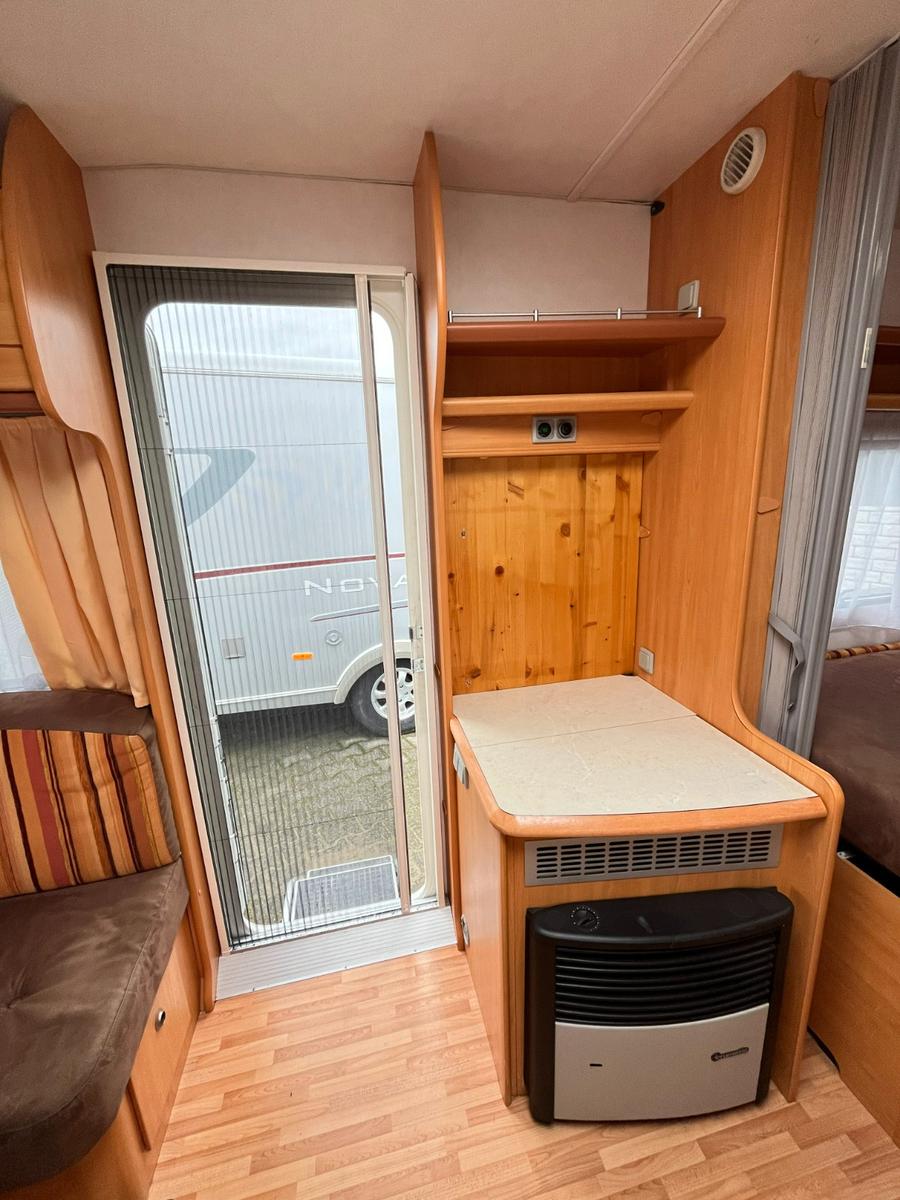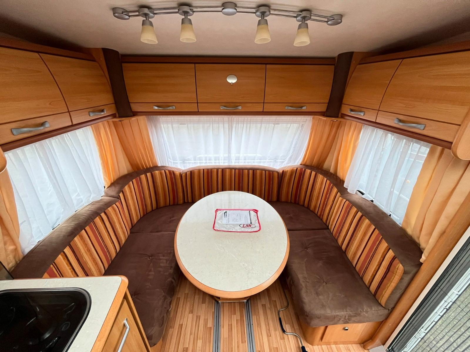 Geräumiger LMC 520 HTE, für 4 Personen.Dieser Wohnwagen verfügt über ein schönes, geräumiges Badezimmer im Heck.Erstzulassung: 07-04-2008.Rundsitzgruppe.Schlafzimmer mit Einzelbetten (80cm x 185/190cm), TV-Abstellplatz mit TV-Anschluss und Strom, abschließbar mit Falttüren.Küche mit 3 Flammenkocher und Spulbecken mit Glasabdeckung, Kühlschrank mit Gefrierfach und Dunstabsughaube.TV-Abstellplatz, TV-Anschluss und Truma-Vent Umluftheizung.Badezimmer im Heckbereich, ausgestattet mit: sep.Waschstation mit Spiegelschränken, Spots, Stauraum, Naßzelle mit Thetford Chemie-Toilette, Duschwanne und geräumigen tiefen Kleiderschrank.Ausstellfenster rundum.Kombi-Kassettenrollos.Dometic-Klimaanlage.Panorama-Dachluke.Truma-Therme Warmwasserversorgung.Frischwassertank.Fliegengittertür.Einfüllöffnung Frischwassertank.Mover.Fahrradträger.Antischlingerkupplung.Masse leeres Fahrzeug: 1170 Kg.Zul.Gesamtgewicht: 1600 Kg.Tüv und Gasabnahme auf Wunsch möglich (siehe Homepage-Impressum).www.mobile.de/der-hollanderUnsere Anzeigen wurden mit größt möglicher Sorgfalt erstellt, es können daraus jedoch keine Rechte abgeleitet werden.Wir haben geöffnet von Montag bis Freitag von 10:00 bis 17:00 Uhr.Das Hollander-Team