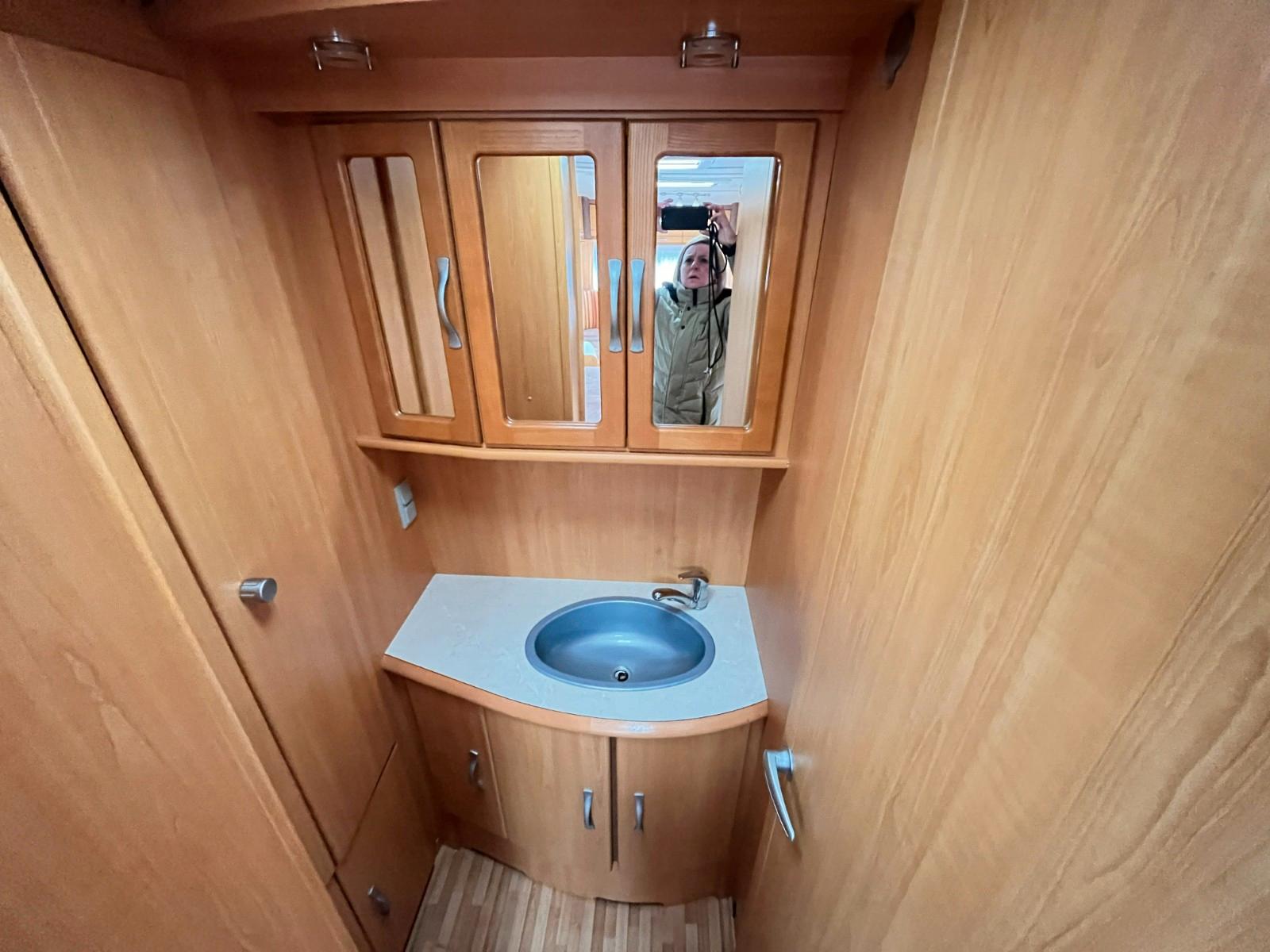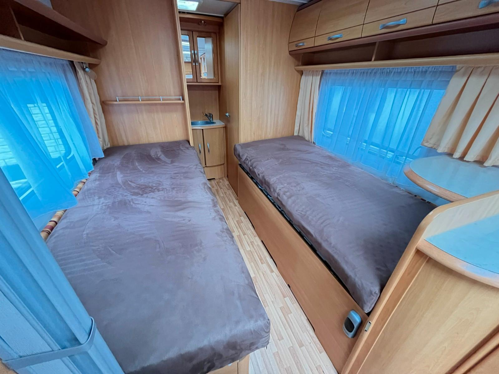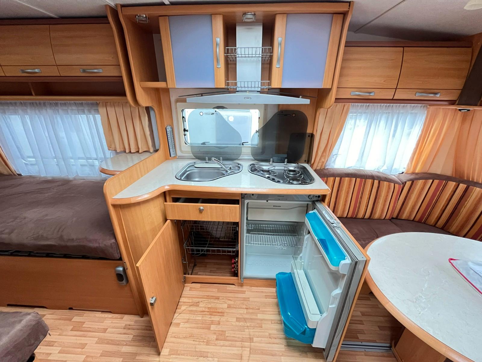 Geräumiger LMC 520 HTE, für 4 Personen.Dieser Wohnwagen verfügt über ein schönes, geräumiges Badezimmer im Heck.Erstzulassung: 07-04-2008.Rundsitzgruppe.Schlafzimmer mit Einzelbetten (80cm x 185/190cm), TV-Abstellplatz mit TV-Anschluss und Strom, abschließbar mit Falttüren.Küche mit 3 Flammenkocher und Spulbecken mit Glasabdeckung, Kühlschrank mit Gefrierfach und Dunstabsughaube.TV-Abstellplatz, TV-Anschluss und Truma-Vent Umluftheizung.Badezimmer im Heckbereich, ausgestattet mit: sep.Waschstation mit Spiegelschränken, Spots, Stauraum, Naßzelle mit Thetford Chemie-Toilette, Duschwanne und geräumigen tiefen Kleiderschrank.Ausstellfenster rundum.Kombi-Kassettenrollos.Dometic-Klimaanlage.Panorama-Dachluke.Truma-Therme Warmwasserversorgung.Frischwassertank.Fliegengittertür.Einfüllöffnung Frischwassertank.Mover.Fahrradträger.Antischlingerkupplung.Masse leeres Fahrzeug: 1170 Kg.Zul.Gesamtgewicht: 1600 Kg.Tüv und Gasabnahme auf Wunsch möglich (siehe Homepage-Impressum).www.mobile.de/der-hollanderUnsere Anzeigen wurden mit größt möglicher Sorgfalt erstellt, es können daraus jedoch keine Rechte abgeleitet werden.Wir haben geöffnet von Montag bis Freitag von 10:00 bis 17:00 Uhr.Das Hollander-Team