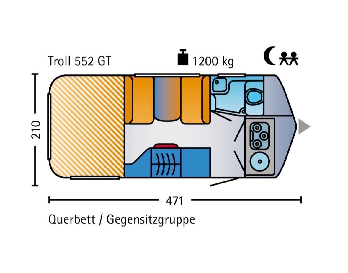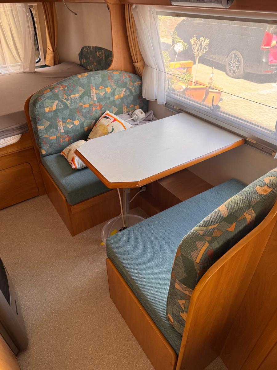 Hymer Troll 552 GT – Baujahr 2005 – gepflegt & reisefertig!Wir verkaufen schweren Herzens unseren geliebten und gepflegten Hymer Troll 552 GT Baujahr 2005. er ist sofort einsatzbereit ideal für PaareFür uns leider zu klein. Technische Daten: • Baujahr: 2005 • Länge: ca. 5,72m • Breite: ca. 2m - Höhe: 2,19mMit geschlossenem Hubdach • zul. Gesamtgewicht: 1200kg • 100 km/h-ZulassungAusstattung & Extras: • Bequeme kleine Sitzgruppe (umbaubar zum Kinderbett 158 x 95 cm • Festbett mit hochwertiger Matratze 2m x 1,40m (so gut wie neu, 3x allerdings immer mit zusätzlichem Topper genutzt) • Küche mit 3-Flammen-Gaskocher, Spüle und Kühlschrank • Bad mit Waschbecken, Spiegel und Stauraum WC tretford c400 • Truma-Heizung mit Umluft und Vorzeltausgang • Verdunklungsrollos & Fliegengitter an allen Fenstern • Großer Stauraum im Heck • Vordach mit Seitenwänden • Ersatzrad & GasflaschenhalterungKleiner Riss in der Heckscheibe. Professionell geklebt und dichtDeichselabdeckungKunststoff beschädigt (siehe Fotos)Zustand: • Nichtraucherfahrzeug • sehr gepflegt • Regelmäßig gewartet . Neue Reifen