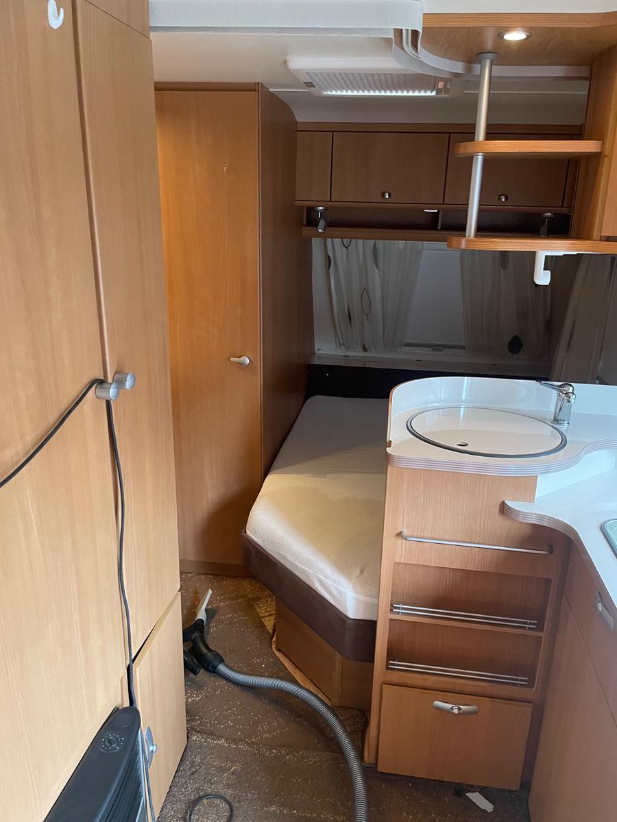 Schöner Tabbert Da Vinci 525 TD abzugeben.BJ. und Erstzulassung 2010.TÜV und Gasprüfung ohne Mängel neu im August 25.Reifen neu August 25.Gepflegter Wagen mit guter Ausstattung.Der Wohnwagen steht außer während der Urlaubszeit und jetzt grade weil wir ihn abgeben in einer trockenen Scheune.Französisches Bett mit Lattenrost.Wohn und Schlafbereich komplett abtrennbar durch eine Faltwand.Große Sitzgruppe umbaubar zu einem Bett für zwei oder drei.Jede Menge Stauraum in Schränken, Wandkästchen, unter den Sitzen und unter dem Doppelbett.Bad mit Toilette und Dusche. Thetford Cassette. Toilette drehbar.Frischwassertank. Abwasserwagen.Heizung mit Gebläse und Raumluftverteilung.Kühlschrank mit Gefrierfach.Warmwasser.Drei Flammen Gaskocher.Edelstahl Spüle.Die ganzen Gasgeräte sowie Warmwasser wurden von uns nie benutzt, wir haben drin weder gekocht, gegessen oder geheizt. Der Kühlschrank lief bei uns nur immer über Strombetrieb. Die Vorbesitzer haben wohl mal gekocht aber mehr nicht. Die Dusche ist ebenso unbenutzt. Die Toilette wurde nur von unserem kleineren Sohn benutzt im Ausnahmefall damit er nicht nachts durch den Campingplatz laufen musste.Kleiner versteckter Safe für Wertsachen.Gaswarner.Alle Dach und Seitenfenster zum öffnen und mit Verdunkelung und Fliegengitter.Fliegengitter in der Eingangstür.Alles voll funktionsfähig.Aussen Alko Schlingerkupplung mit neuen Belägen.Alko ATC Traktion Control, greift automatisch ein wenn der Wohnwagen Schlingern würde.Kühlschrankbetrieb mit Gas möglich während der Fahrt durch duocontrol.Ebenso über 12V auf der Hängersteckdose wenn der Motor läuft.Mover move control mit Fernbedienung.Großer Gasstaukasten.Kurbelstützen mit Bigfoot Auflage.Großes Vorzelt von dwt, allerdings etwas beschädigt durch einen Sturm.Ist aber voll funktionsfähig und dicht.Am rechten Vorzelt Seitenteil ganz unten ist eine Naht gerissen und ein paar Laschen gehören vernäht. Ansonsten alles ok. Gestänge komplett Alu daher schön leicht.Ein großer Vorzeltboden über die ganze Länge ist auch noch da, falls gewünscht kann er gerne mitgenommen werden.100kmh Zulassung.Separater Ersatzradträger für Montage unter dem Wagen kann mitgenommen werden bei Bedarf, bringt mehr Platz im Gaskasten.Kleiner TV mit DVD und mobiler SAT Anlage plus Stativ für die Schüssel ist mit dabei.SAT Dose im Wagen ist vorhanden, Außenanschluss für SAT Anlageebenso.Außengasanschluss für z.B. Grill oder Gaskocher.Aussenlicht oberhalb der Tür mit Bewegungsmelder.Abmessungen:Gesamtlänge ca. 726cmAufbaulänge ca. 600cmBreite ca. 230cmHöhe ca. 260cmLeergewicht 1300-1350kgZulässiges Gesamtgewicht 1700kg.Also 400kg Zuladung durch die 1700kg Achse.Deshalb keine Probleme wegen überladen.Alle Bedienungsanleitungen für den Wagen, die Achse, ATC, Kupplung, Mover mit ABE, Gasanlage, Vorzelt, Inneneinrichtung mit allen Geräten wie Kühlschrank, Kochen, Wasser, Toilette, Stromversorgung, Beleuchtungssystem und so weiter komplett dabei.Mehr fällt mir gerade nicht ein.Der Wagen ist gepflegt, wir haben immer aufgepasst, trotzdem hat er natürlich ein paar Gebrauchsspuren.Vom Vorgänger noch eine Daumennagel große Beule oberhalb der Kühlschrank Belüftung und da und dort mal ein kleiner Kratzer oder Druckstellen im Alu.Auf dem Dach befinden sich ein paar Hageldellen, nur kleine aber eben vorhanden. Von uns wurde aber kein Schaden gemeldet. Ob vom Vorbesitzer kann ich nicht sagen. Falls noch nichts gemeldet wurde könnte man da evtll. noch was rausholen. Wir machen diesbezüglich nichts mehr.Plane bzw. Abdeckhaube für den ganzen Wohnwagen ist auch dabei.Besichtigung jederzeit möglich, wir sind grade am Putzen vom letzten Gebrauch, kann dann schon sein das wir vielleicht noch nicht ganz fertig sind.Wir geben ihn ab weil wir auf ein Wohnmobil umsteigen wollen.Der Preis ist in einem gewissen Bereich verhandelbar aber er wird nicht verramscht, wir können auch noch länger damit wegfahren.