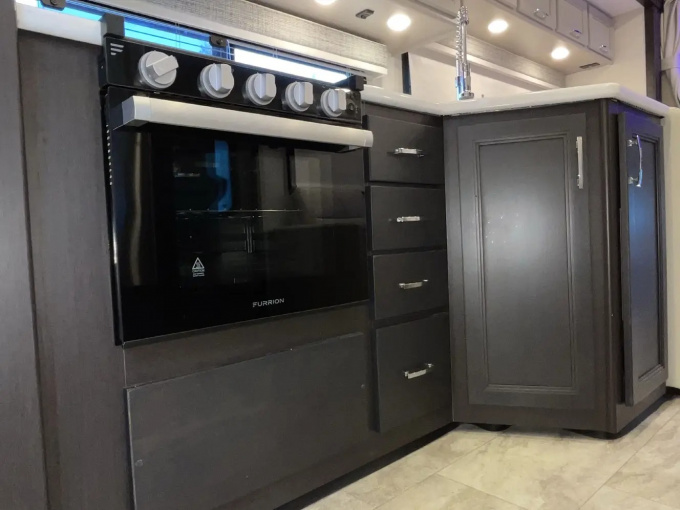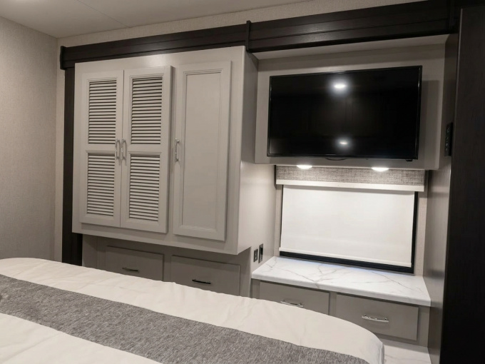 В оснащении Magnitude Grand R36 предусмотрено всё, что обычно ждут от дорогого и хорошо укомплектованного автодома: полноразмерный холодильник, 3-конфорочная газовая плита с духовкой, микроволновая печь, наружная кухня, несколько Smart TV, встроенный дизельный генератор Onan RV QD 6000, солнечная система 100W, бакless водонагреватель, система Winegard ConnecT 2.0 4G/Wi-Fi/TV, автоматические выравнивающие домкраты, камеры обзора и маркиза с LED-подсветкой. Такой набор делает модель особенно интересной для тех, кто хочет путешествовать автономно и с максимальным бытовым комфортом.