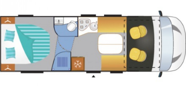 Challenger Sirius, 3048 - автодом (дом на колесах) на 4 человека с ниспадающей и большой двуспальной кроватями, отдельной душевой кабиной. Туалет расположен в центре прицепа. Автодом имеет душ, холодильник и газовую плиту. Он идеально подходит для загородного отдыха, путешествий с семьей, охоты, путешествий по горной местности, краткосрочных путешествий и путешествий по России.