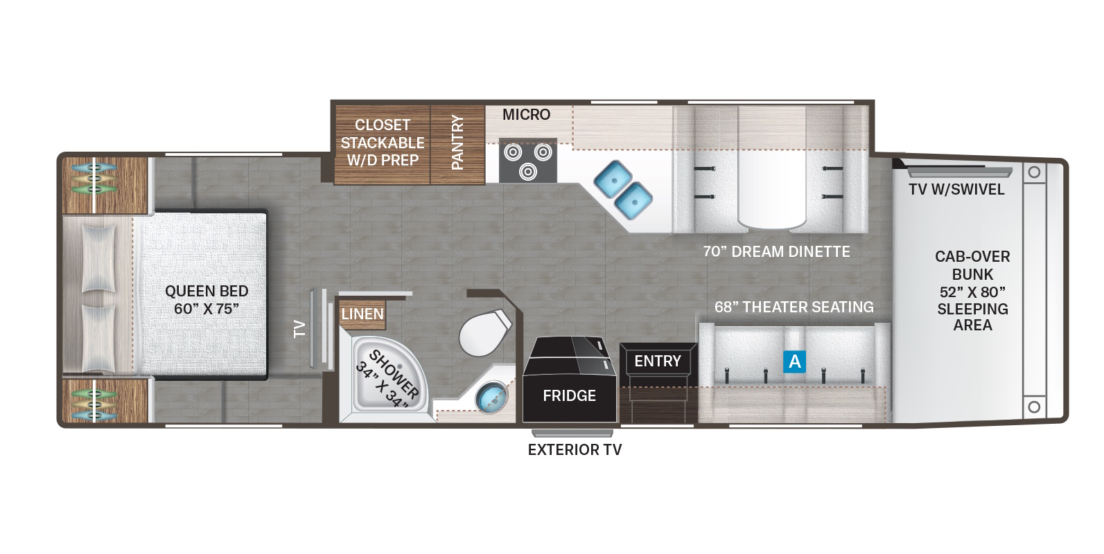 | Размер спального места спереди, мм | 1321 x 2032 (Overhead Bunk) |